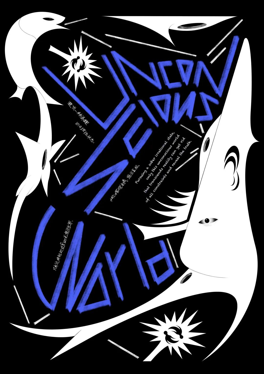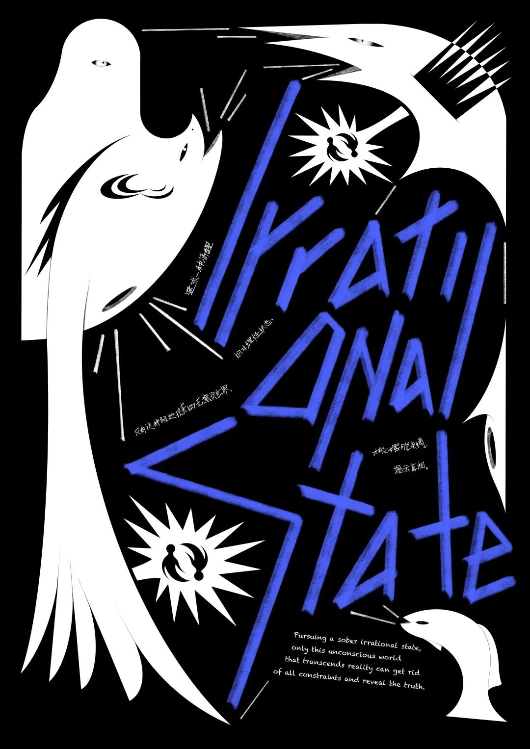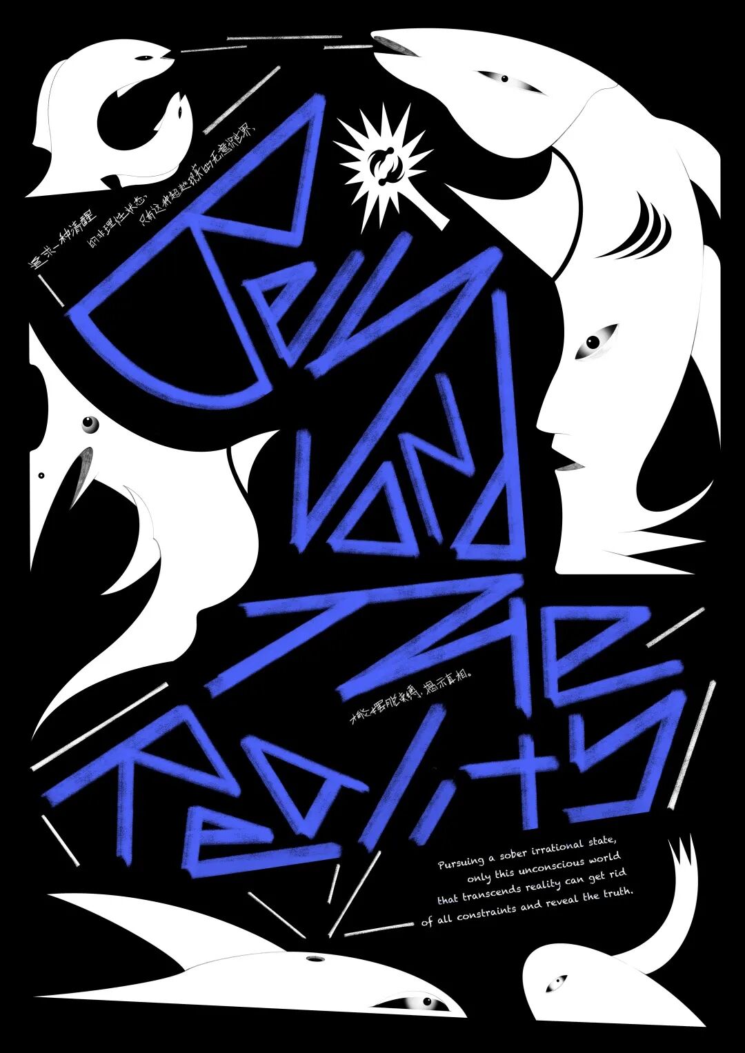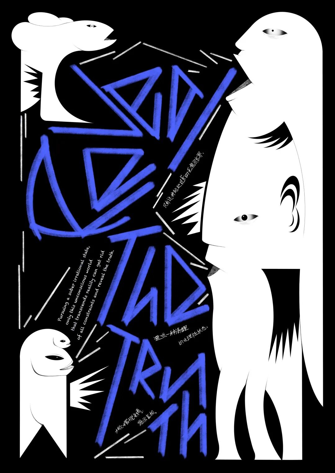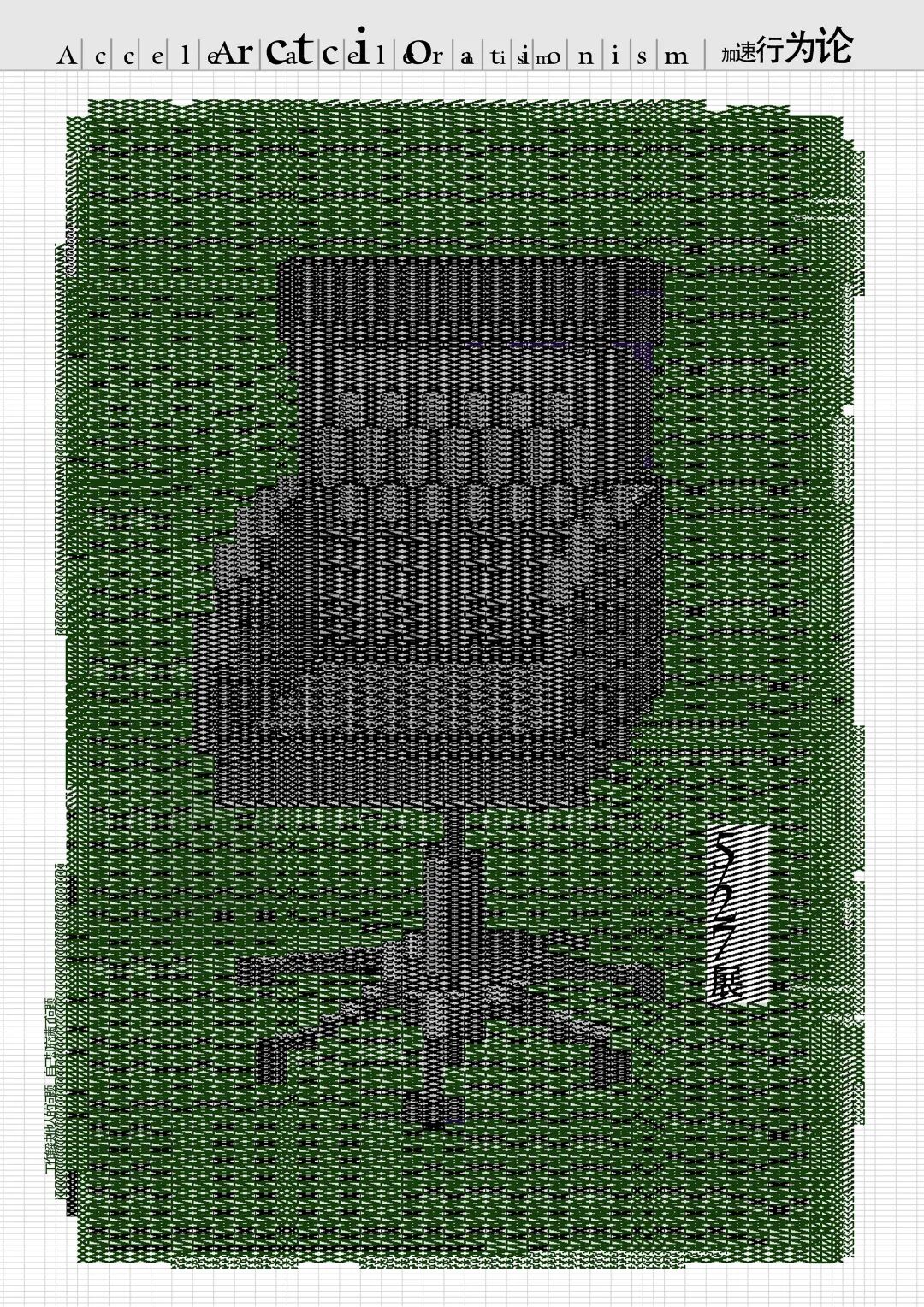 This work originates from the word “accelerationism”. The work believes that social problems like involution and 996 work culture do not exist independently or are caused by only one party. These are the products of the prevalence of accelerationism. Everyone is a supporter, a victim and a denouncer of accelerationism, deeply trapped but unaware. The poster uses the gridlines frame and slashes of Excel to imitate fabric material to create the sense of conflict, highlighting the conflict between people's state of life and the grids representing the program system.