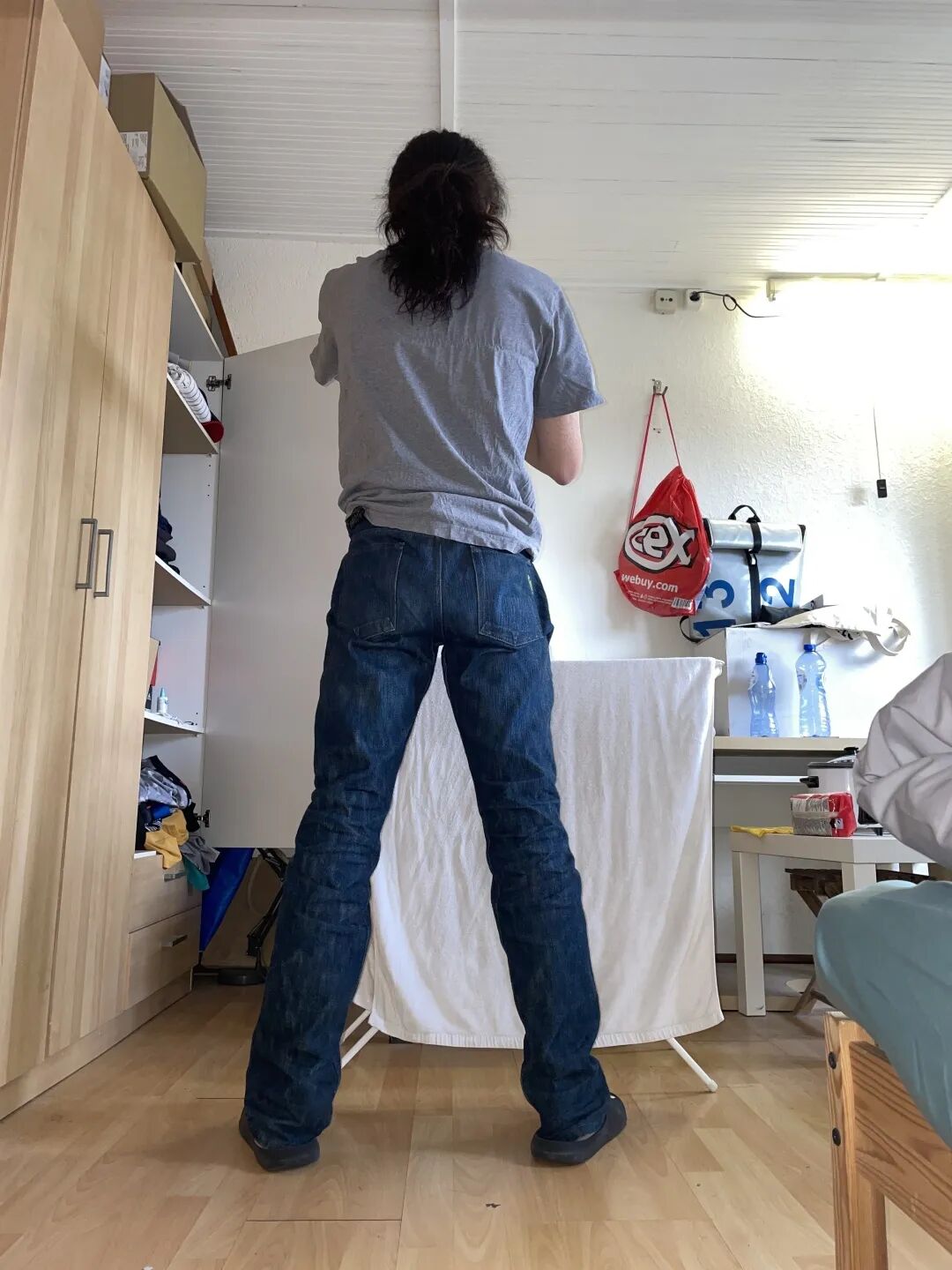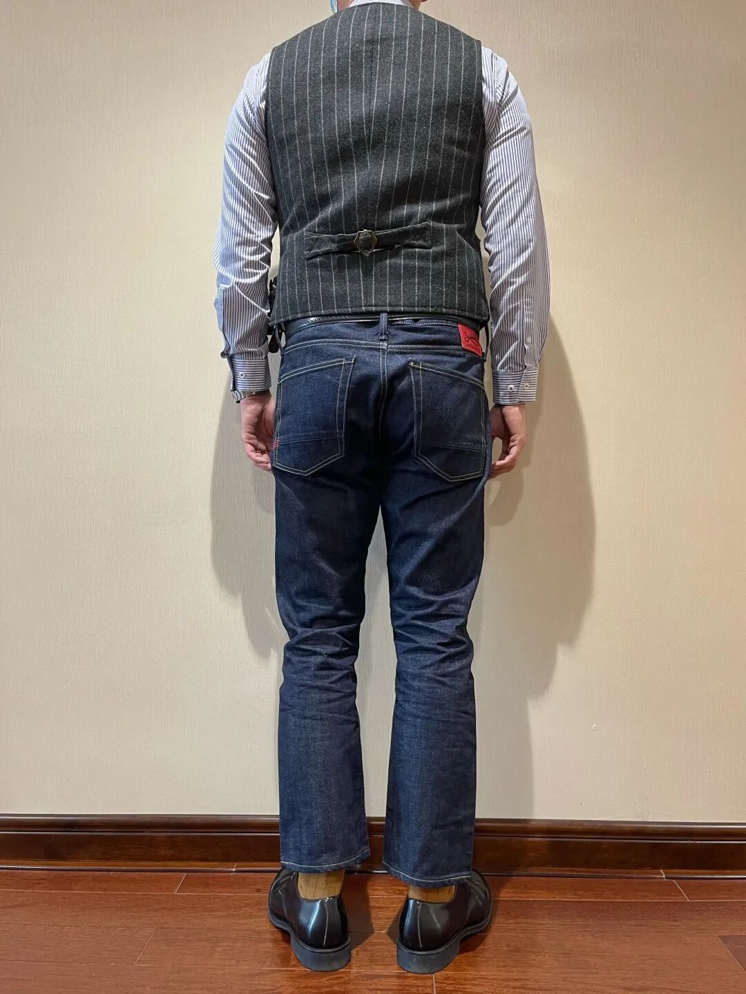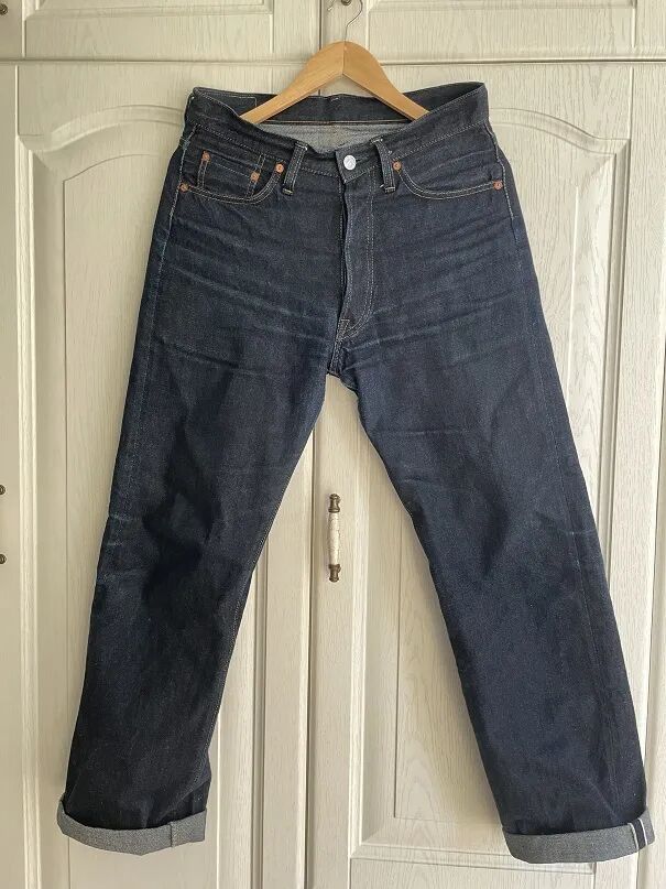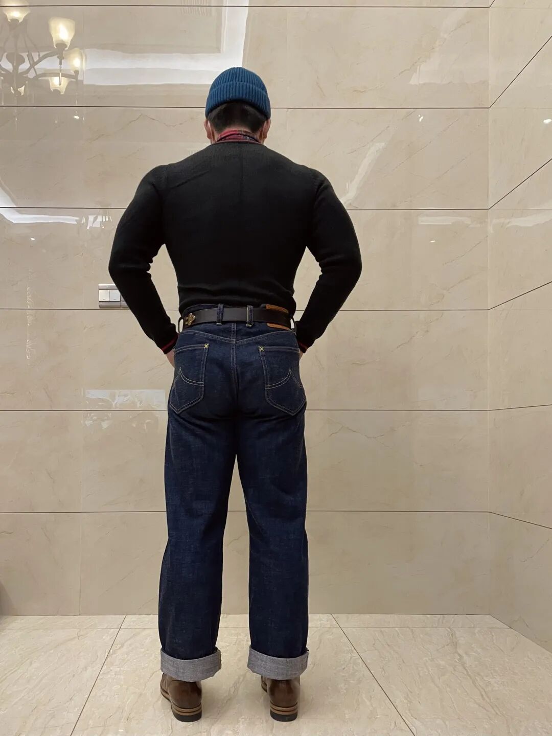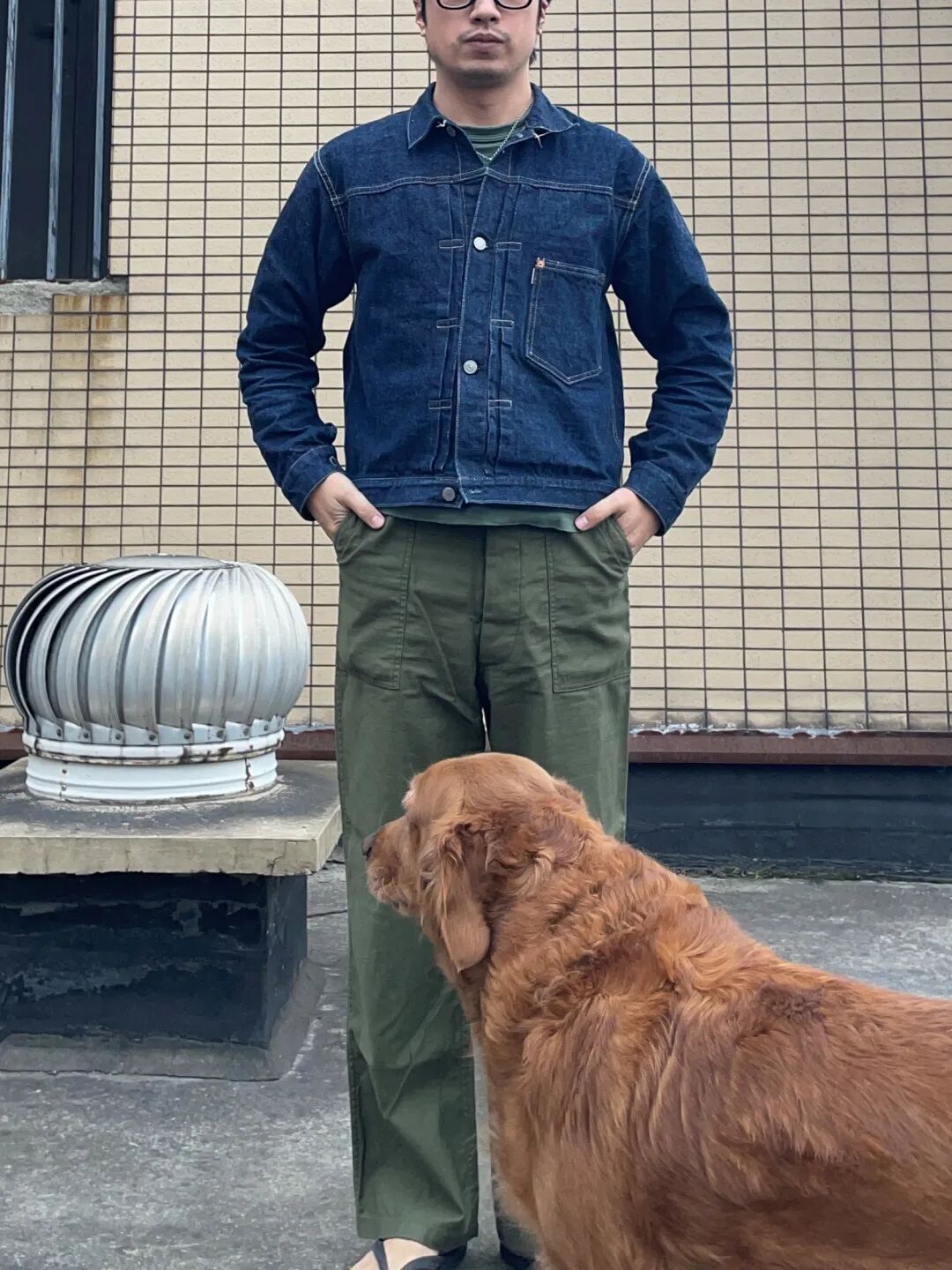 “这条裤子是我穿在外面的那条,两个月的日常穿着,状态良好,但还是不可避免的遭遇了上一条喇叭裤的相同命运,被我的狗咬破了,哈哈哈哈,虽说我很喜欢牛仔裤上有很多小破洞,但我的狗咬出来的洞那真的是不可控的,是怎么样完全看她心情,说实话一开始也在意过,例如我的555厂44501被她咬的时候我在看电影,等我发现的时候裤子已经破了一个巨大的洞,当时真的有呼吸不顺的感觉哈哈哈哈哈,那次过后就看开了,现在她就是我的养牛好伴侣,她想咬就咬吧,让每条裤子都承载我和她的生活记忆。”