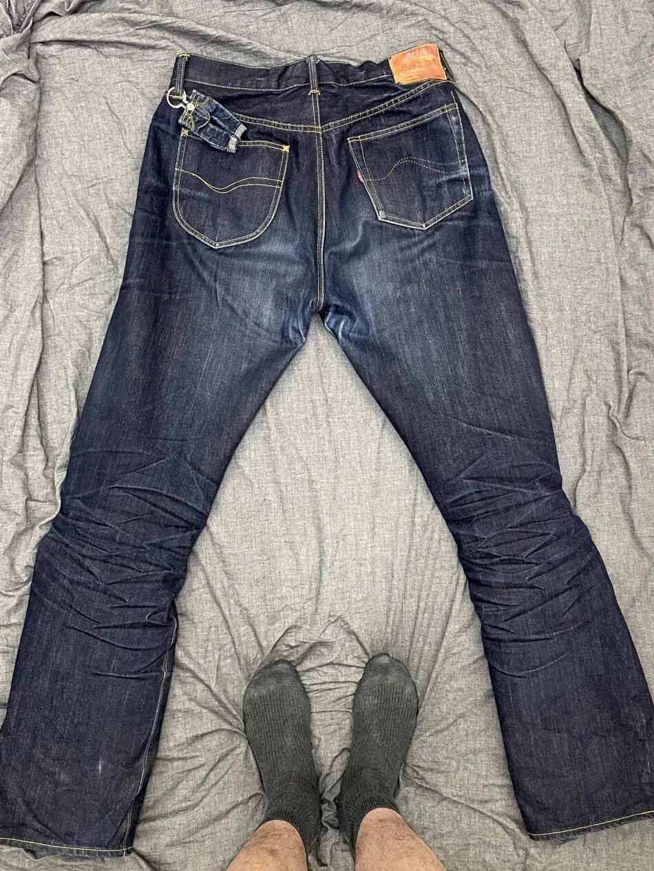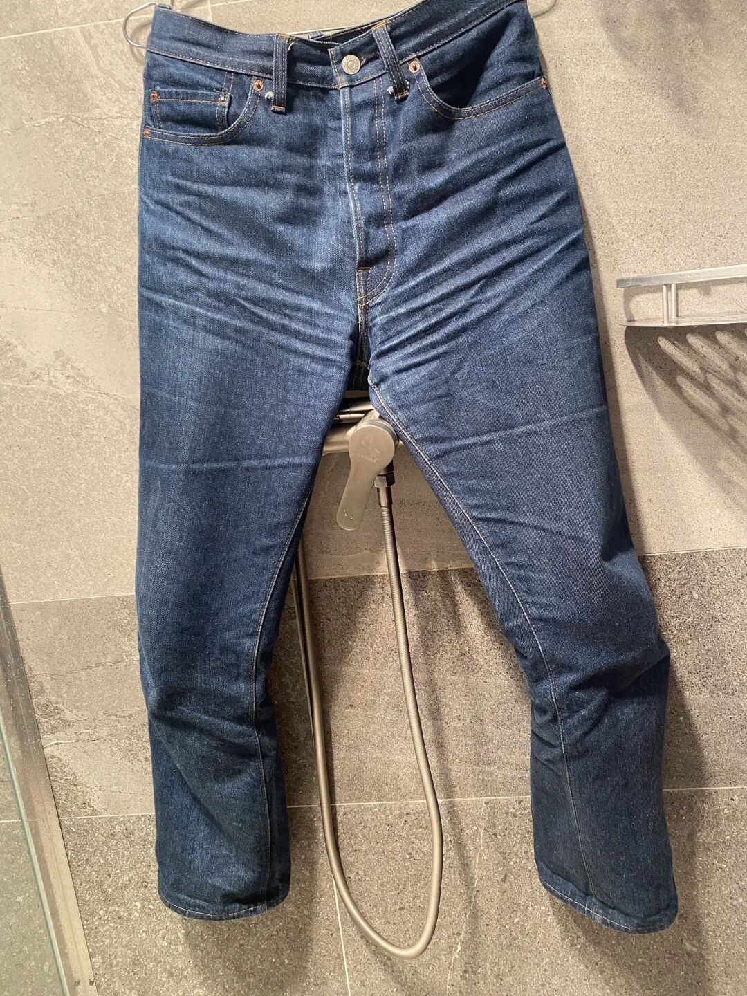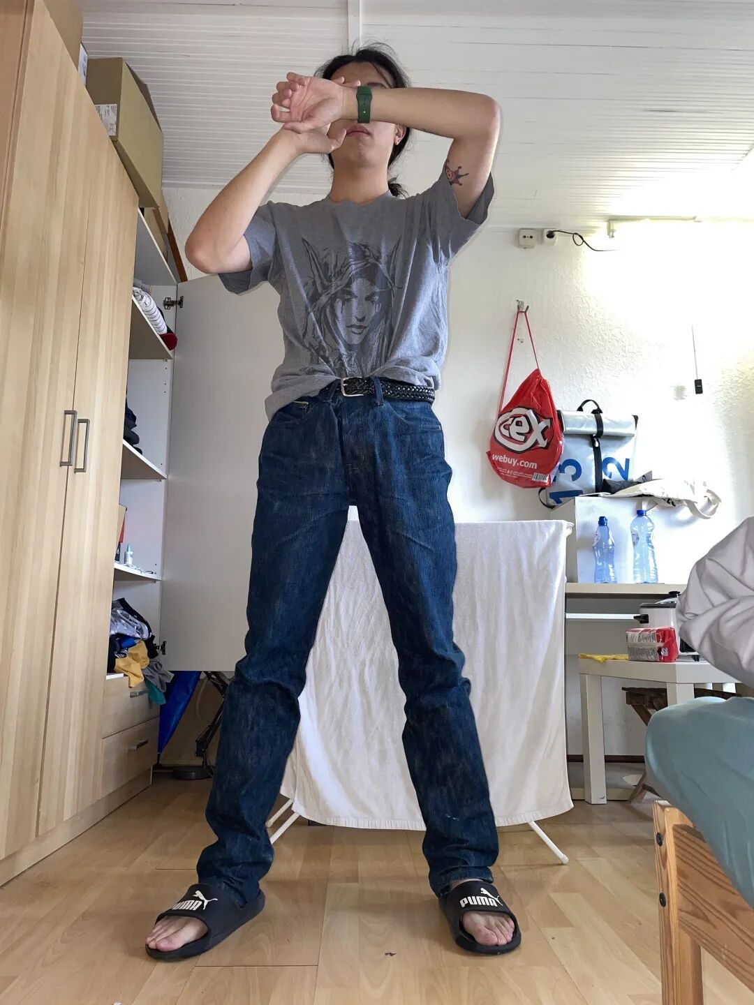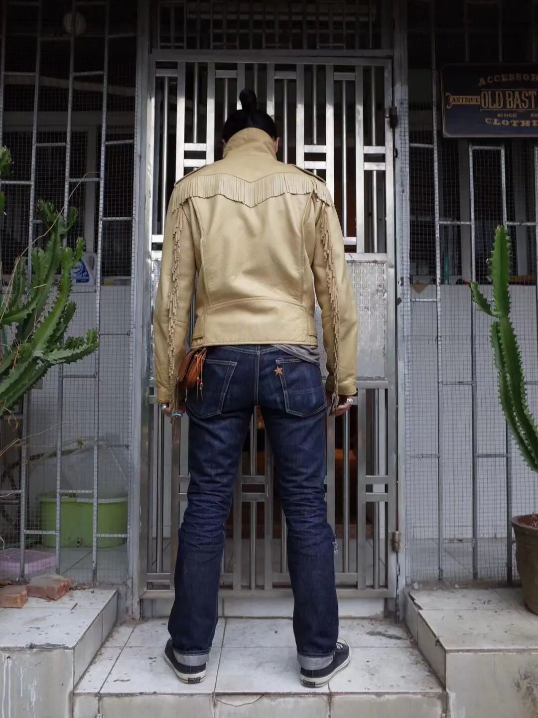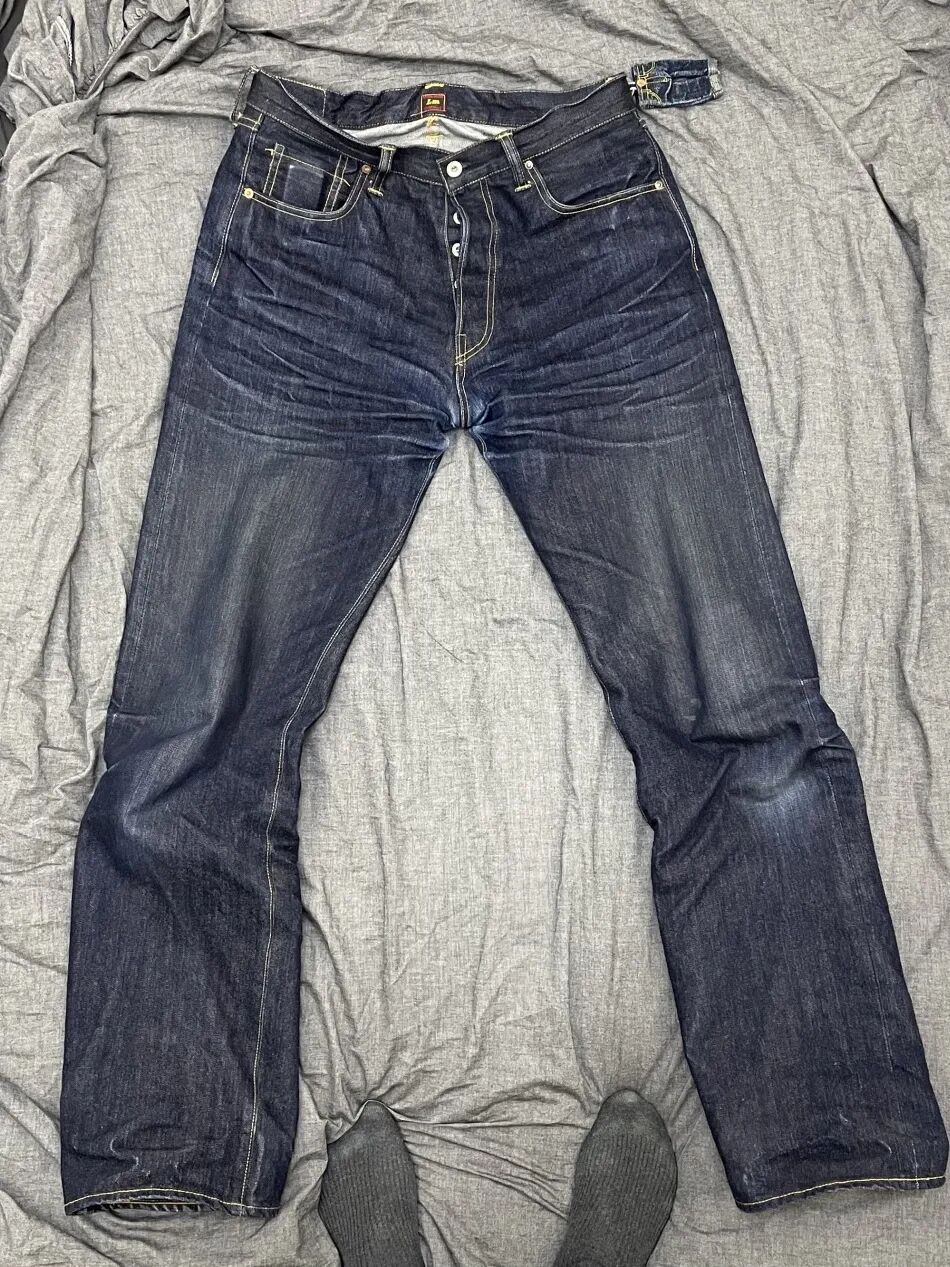 “这条裤子是我穿在外面的那条,两个月的日常穿着,状态良好,但还是不可避免的遭遇了上一条喇叭裤的相同命运,被我的狗咬破了,哈哈哈哈,虽说我很喜欢牛仔裤上有很多小破洞,但我的狗咬出来的洞那真的是不可控的,是怎么样完全看她心情,说实话一开始也在意过,例如我的555厂44501被她咬的时候我在看电影,等我发现的时候裤子已经破了一个巨大的洞,当时真的有呼吸不顺的感觉哈哈哈哈哈,那次过后就看开了,现在她就是我的养牛好伴侣,她想咬就咬吧,让每条裤子都承载我和她的生活记忆。”