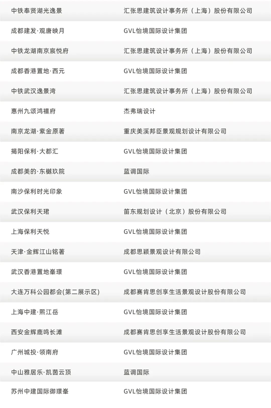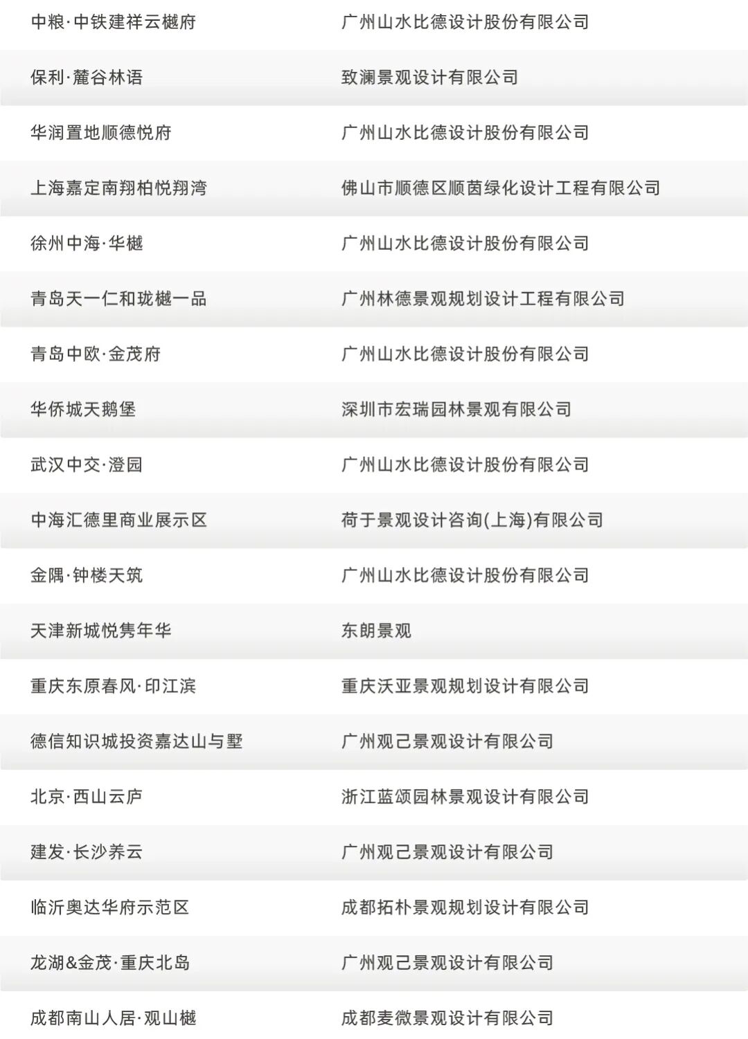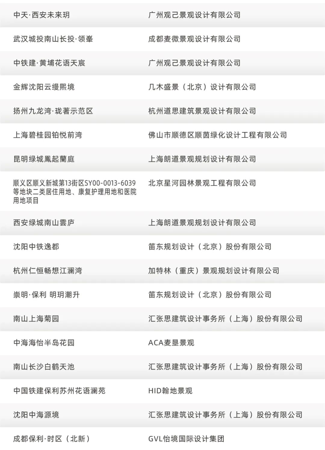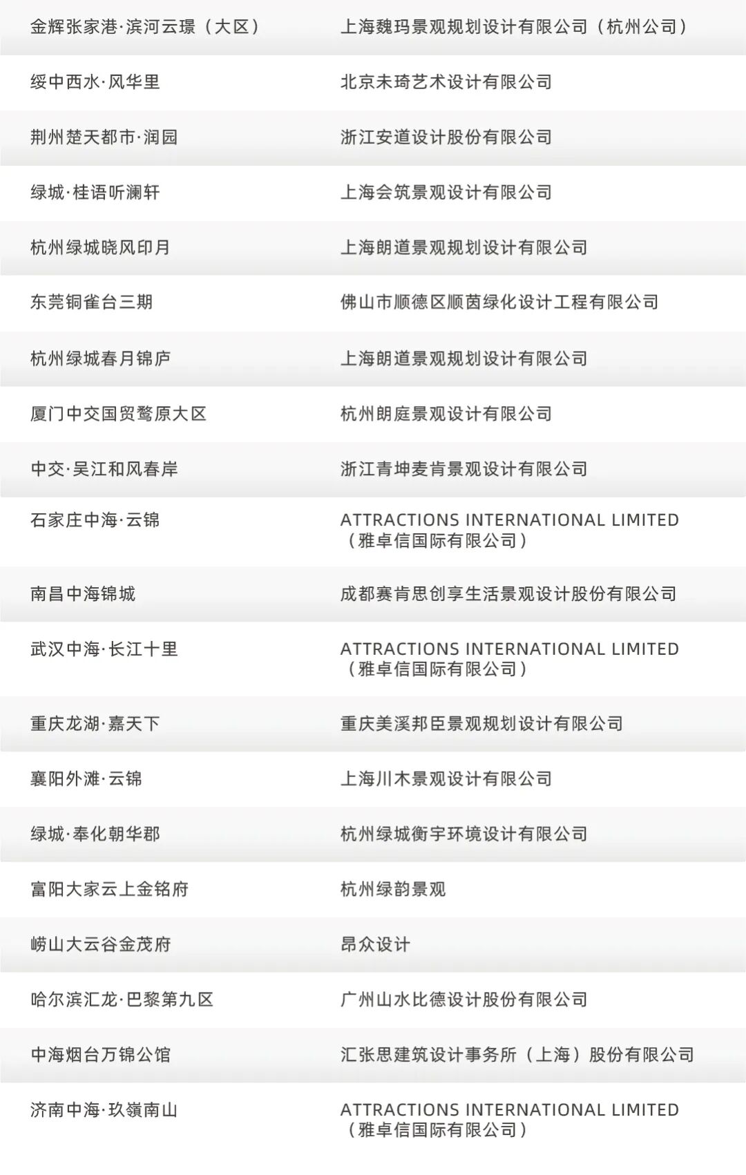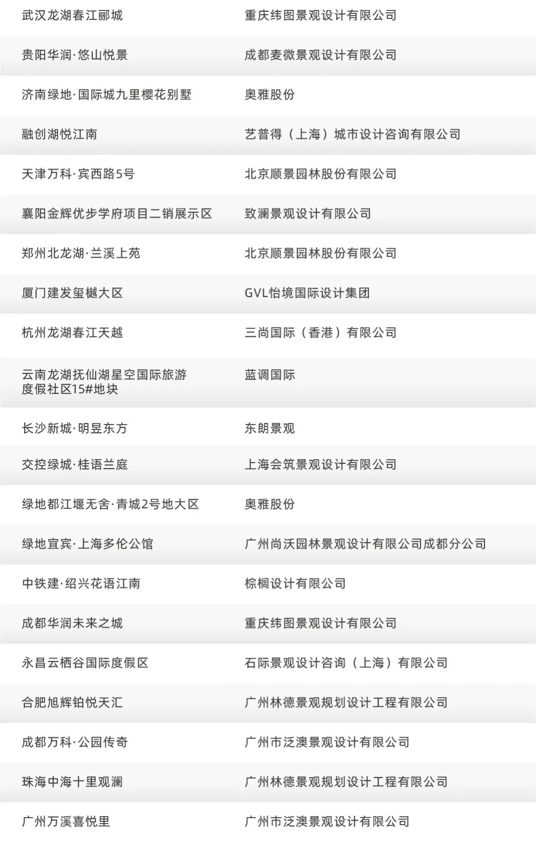 · 本次初审中组委会各区域甲方景观专业人士,秉承"公平、公正、公开、专业"的评选原则,考量了参评项目的设计、人文、艺术、生态、落地效果等多维度进行综合评审,最终入围榜单如下!