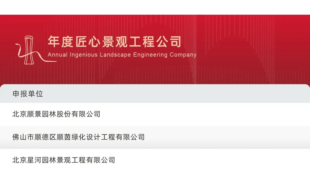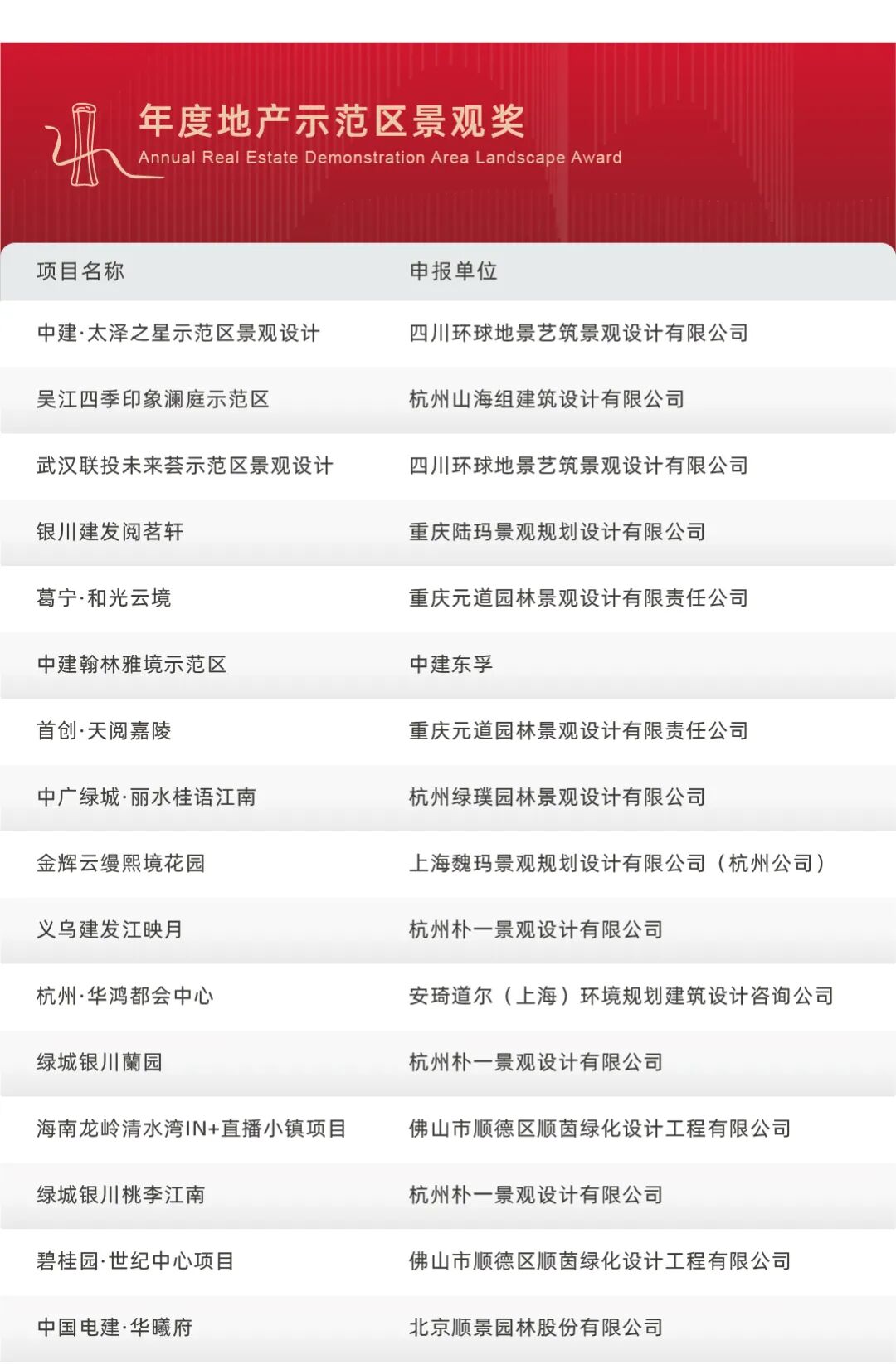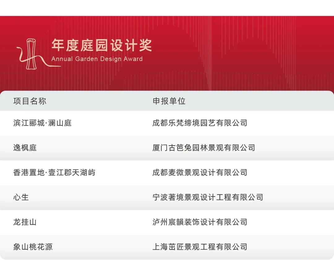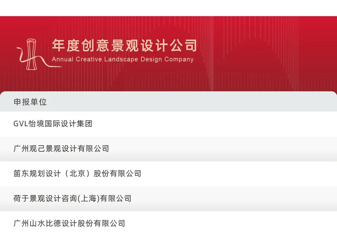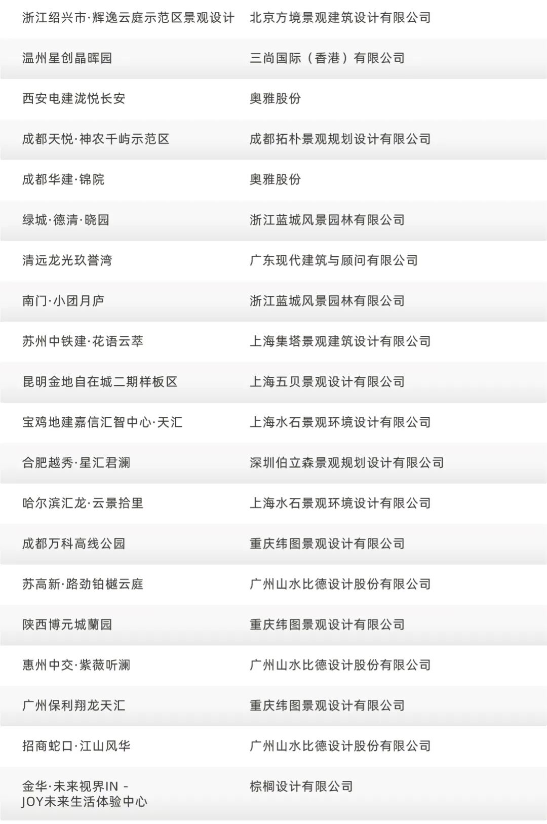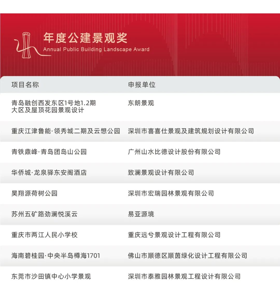 · 本次初审中组委会各区域甲方景观专业人士,秉承"公平、公正、公开、专业"的评选原则,考量了参评项目的设计、人文、艺术、生态、落地效果等多维度进行综合评审,最终入围榜单如下!