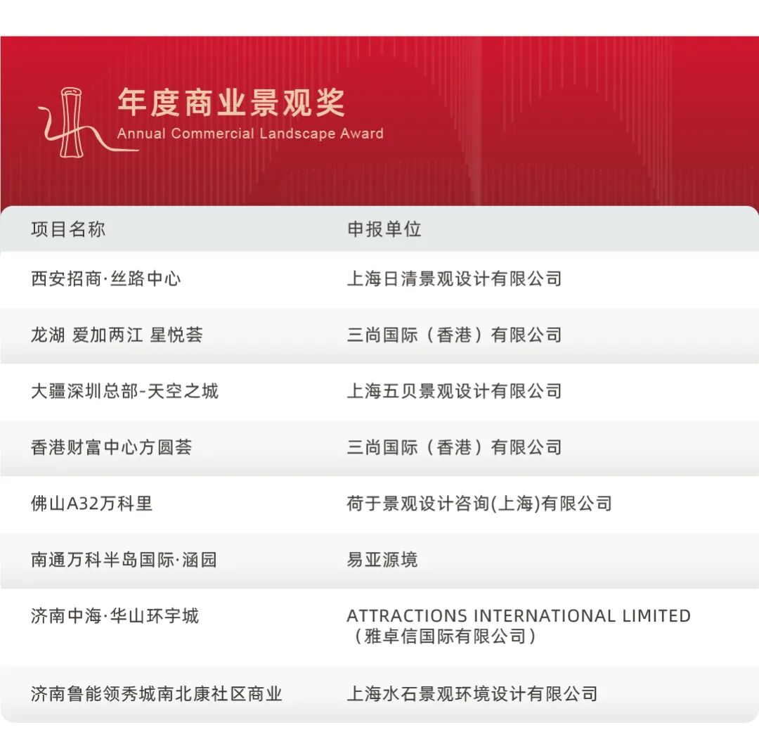 · Following the announcement of the final winners of the 4th LIA Landscape Ingenuity Award International Competition in July 2022, the finalist rate was only 34%, and only 4.1% of the entries won the Gold Award, which is a highly recognized landscape award in the industry.