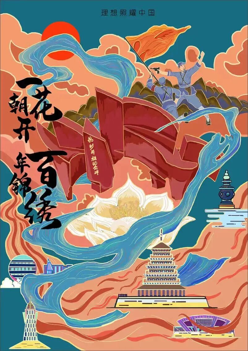 作品名称:《花开百年,锦绣中华》
