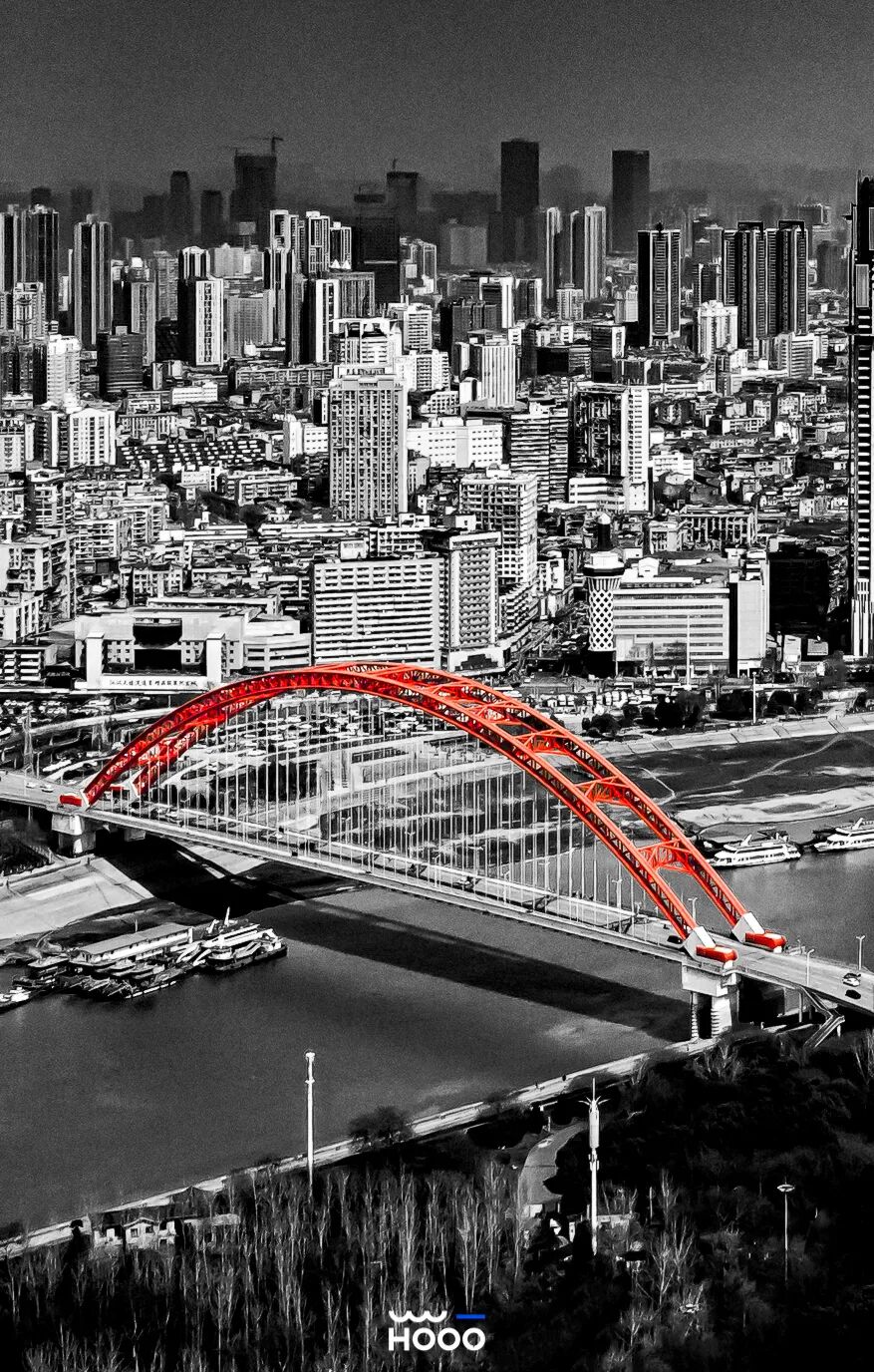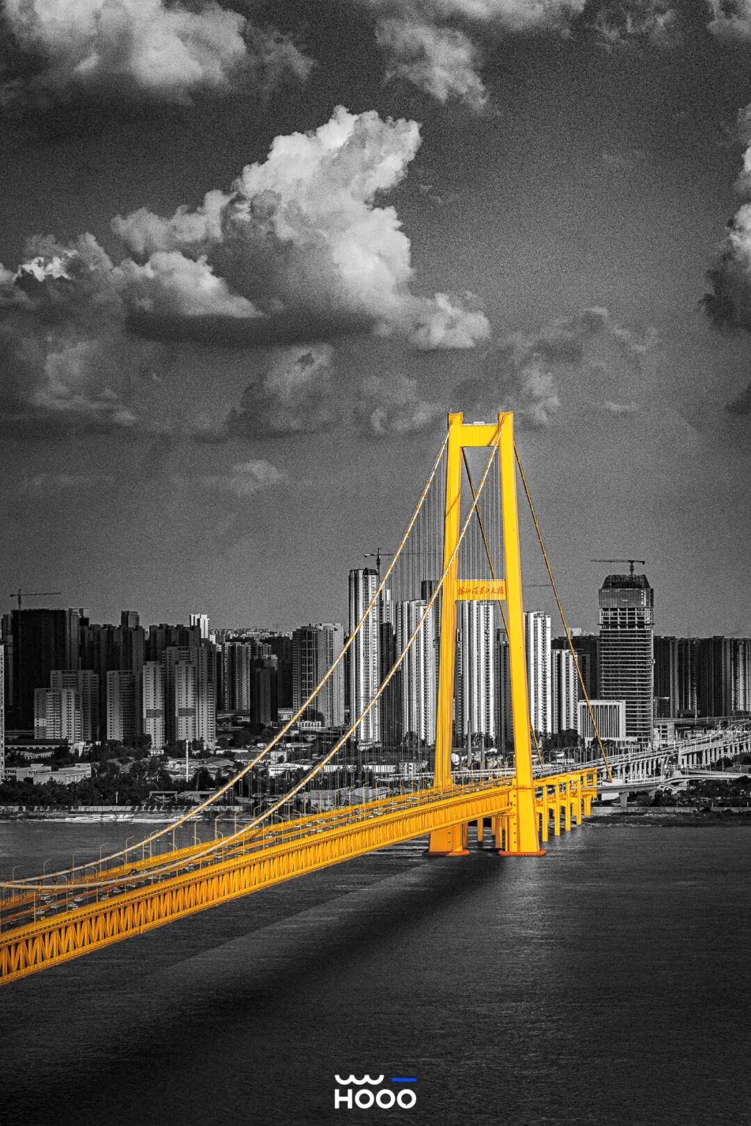 当城市退去繁华,色彩剥离,黑白也自有它的纹理和脉络,像黑色油画棒刮出的画。环境中行走的一抹亮色,让武汉特色的人文和建筑显得更为真实和突出。