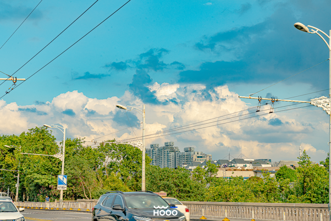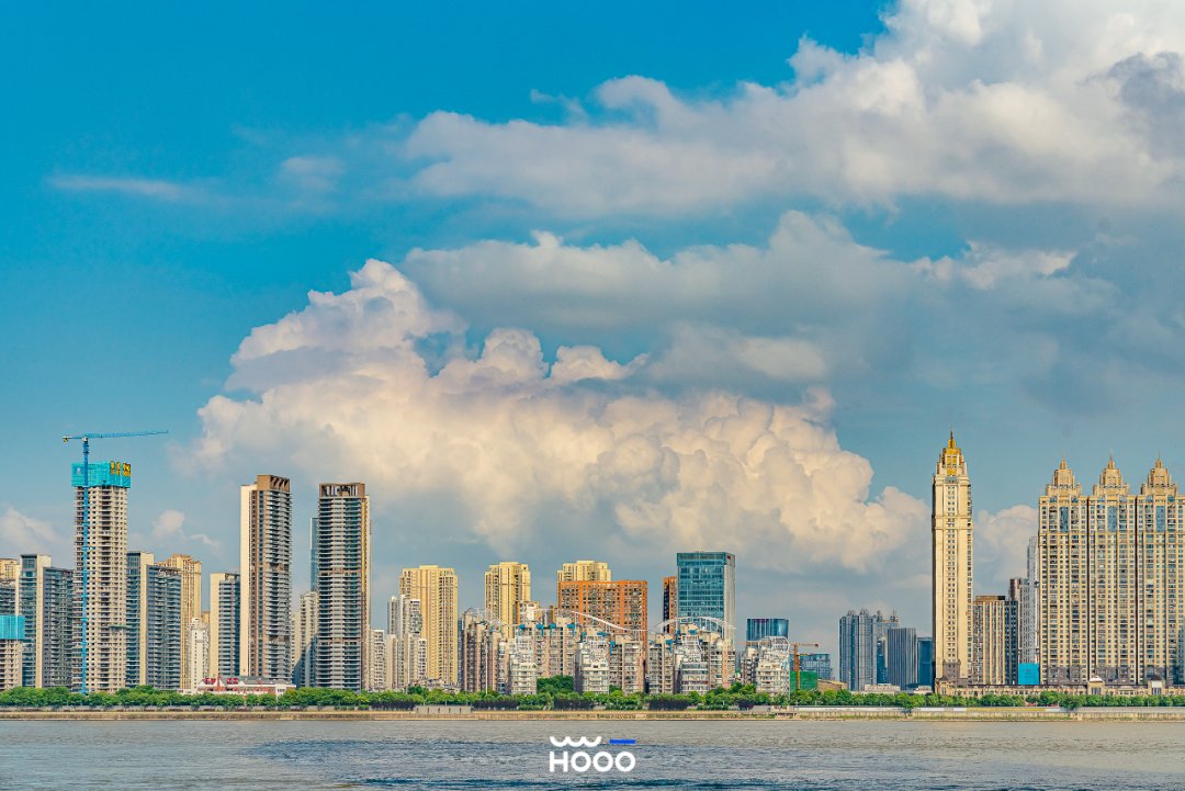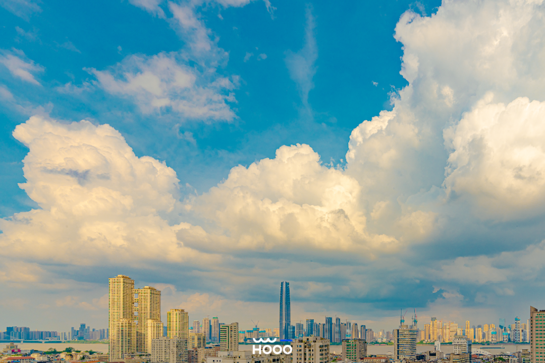 七月的武汉,有宫崎骏笔下的完美夏天。天空蔚蓝,骄阳正好,色彩层次分明,干净又纯粹。随便一抬头,大朵的云都有自己的形状,把周围的建筑映衬得更加具体,活脱脱现实版漫画世界。