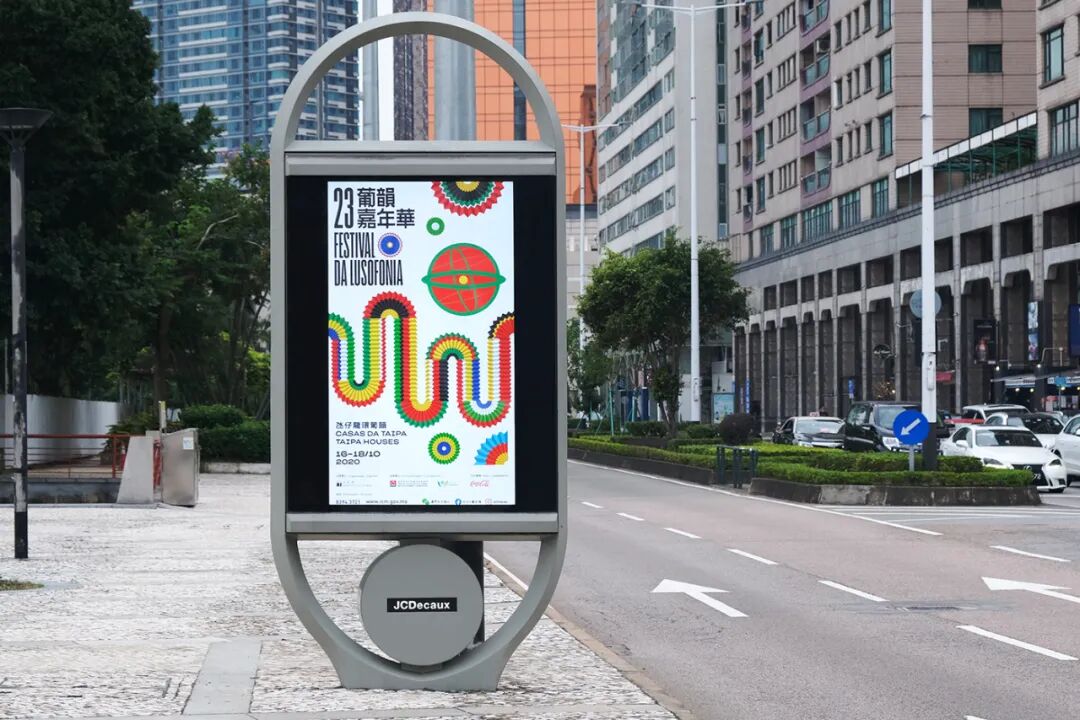 第23届葡韵嘉年华主视觉以葡语国家及地区土风舞者穿着传统民族服饰为主轴,呈现舞蹈时律动感觉,裙摆花纹在半空中旋转,手拉风琴演奏,舞步活泼,踩踏跳跃、节奏强烈。