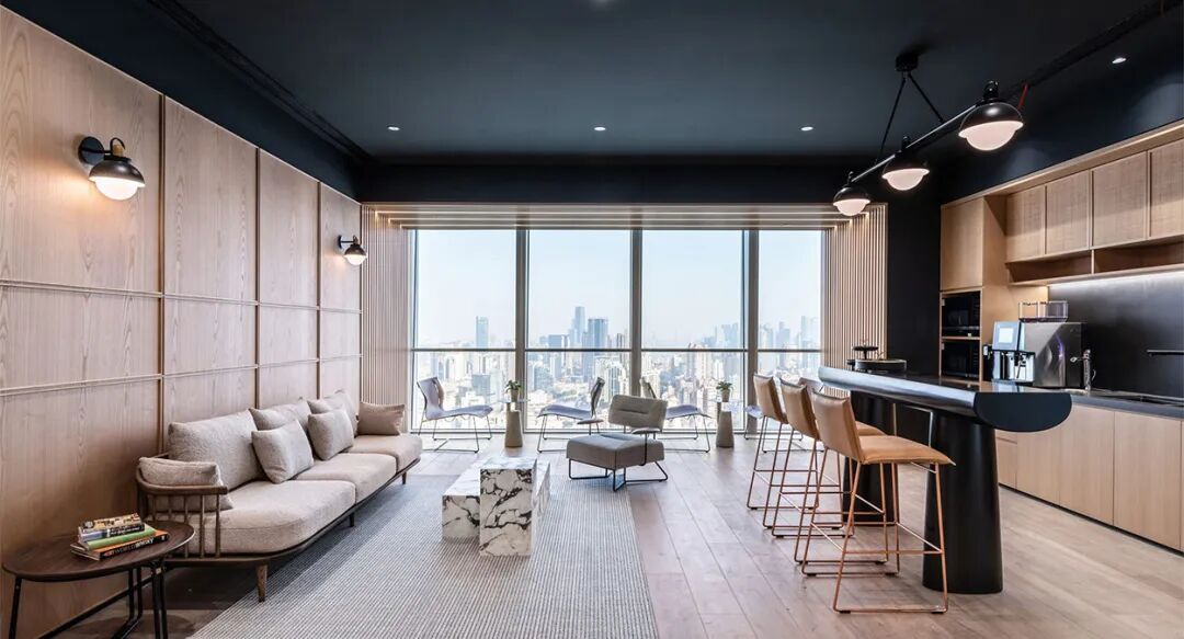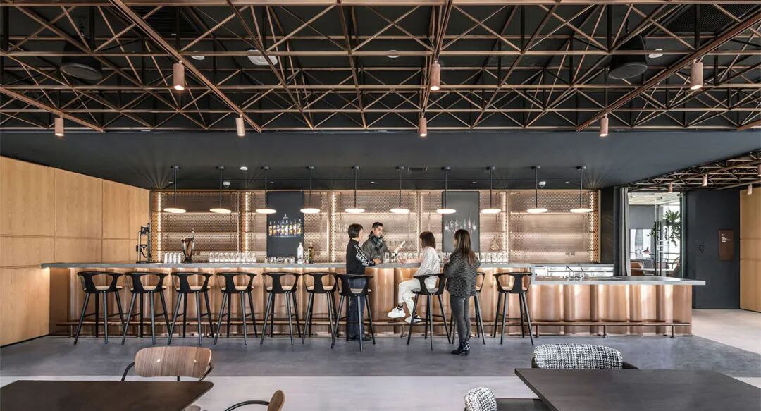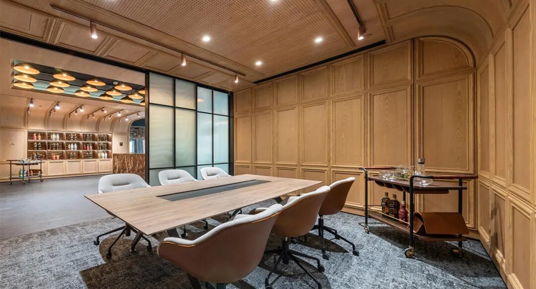 10米长的品酒吧台可以轻松驾驭正式的客户接待、业务洽谈,或是非正式的同事闲谈。适度小酌,静待灵感来袭,浓郁的人情关系也在此焕发。