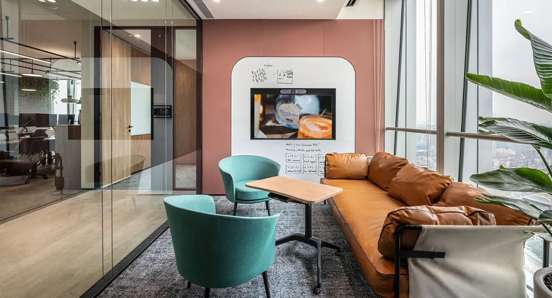 谁说办公空间只是为了工作?家的温馨与BAR的热闹,员工们也能轻松拥有。早C晚A,日常操作罢了!(真不清楚?给我们留言!)这里便是世界知名跨国酒业集团帝亚吉欧Diageo位于上海的中国总部办公空间。