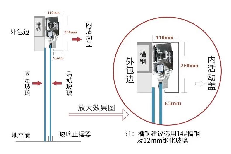 △无框玻璃电动移门示意图