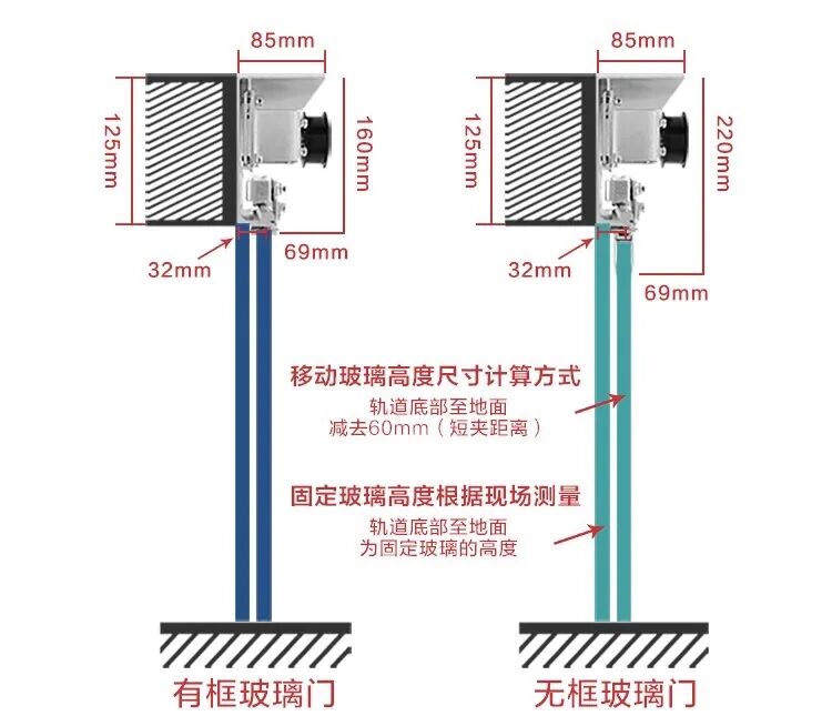 △有框和无框电动移门玻璃高度计算方式