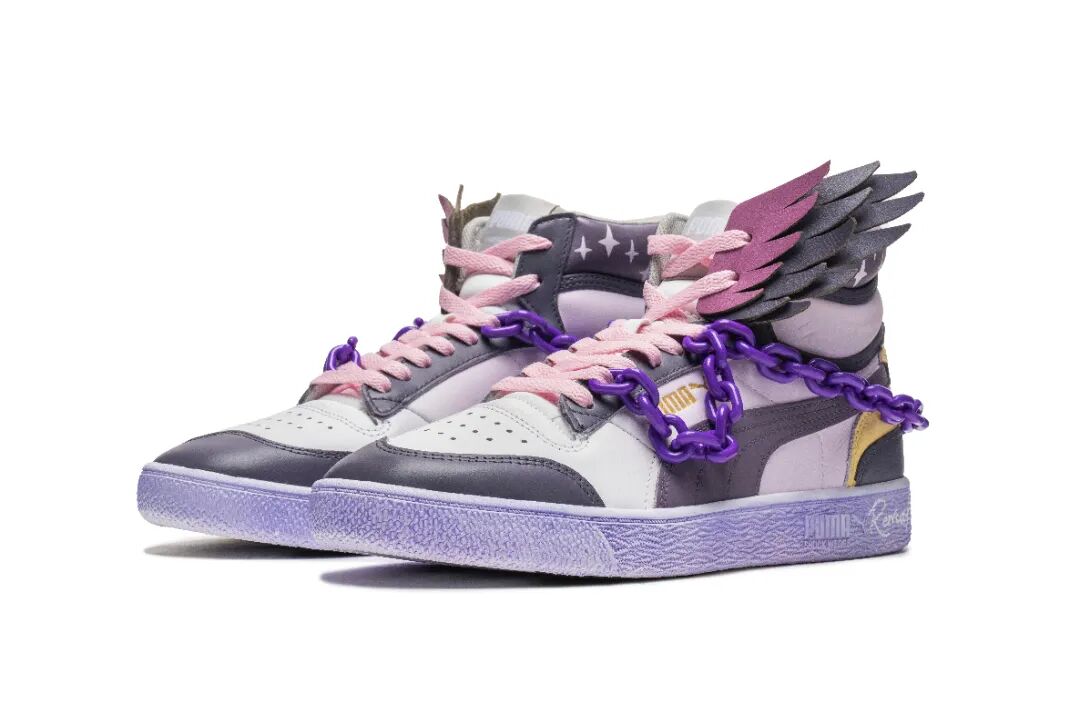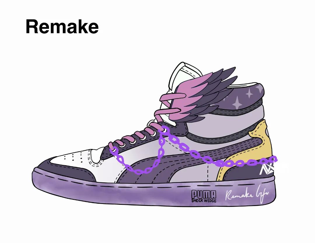 Remake是职业赛事中首位使用莫甘娜作为射手位的选手,他开启了一种玩法潮流,而他的战靴也以莫甘娜为蓝本,鞋帮处星星元素取自端游星之守护者皮肤的宠物,细节拉满;同时鞋舌还增加莫甘娜翅膀,铁链配件则是莫甘娜4技能的体现,繁琐的配件让鞋子更加立体化。