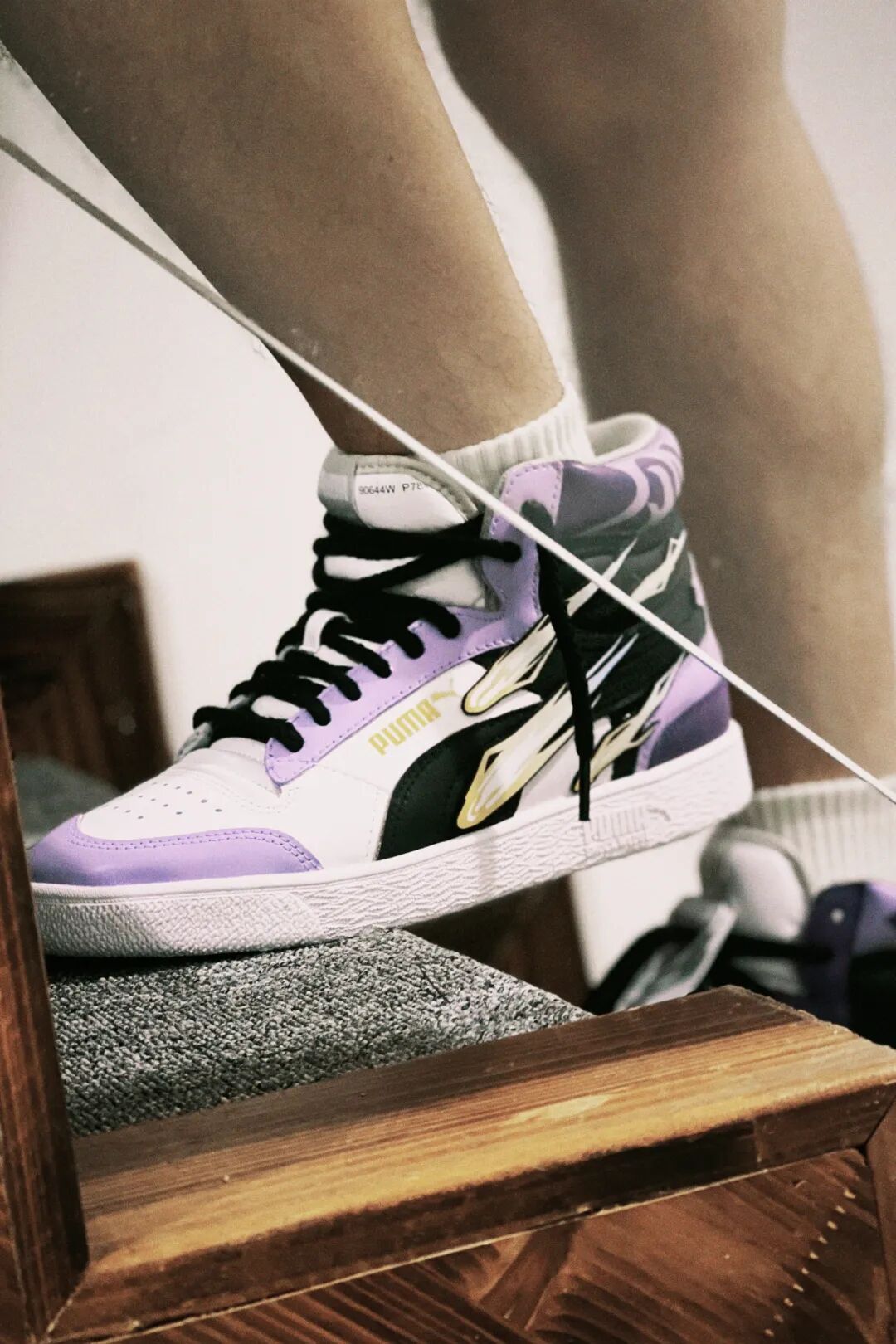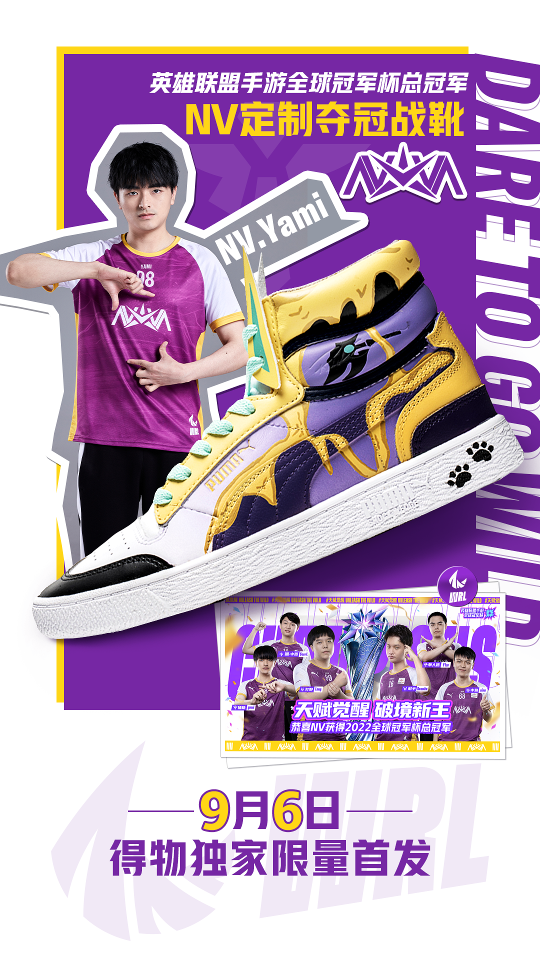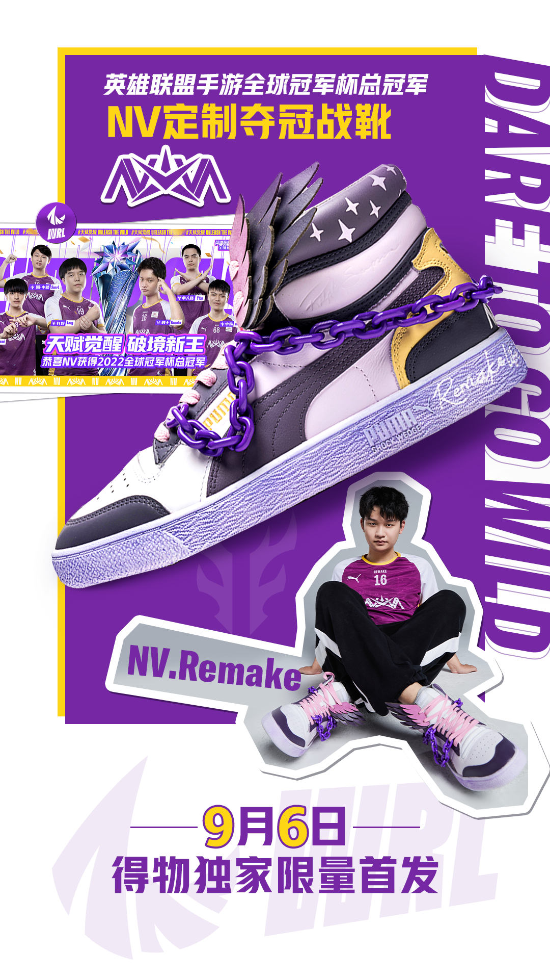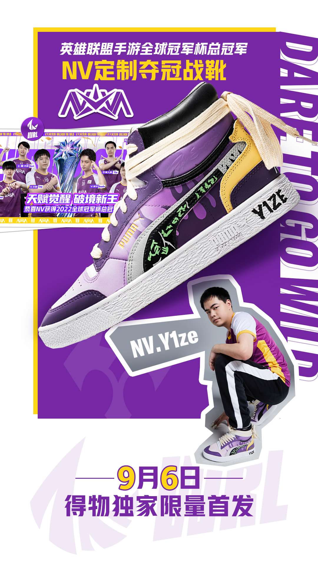 龙是NV战队Long选手热衷的元素,该款式中龙鳞围绕鞋身寓意巨龙藏于云雾中,同时Long FMVP获得者的身份也被搬到鞋头,彰显出该选手在比赛上的出色发挥;鞋口处的紫色绑带灵感则是来自Long的拿手英雄——盲僧的眼罩。