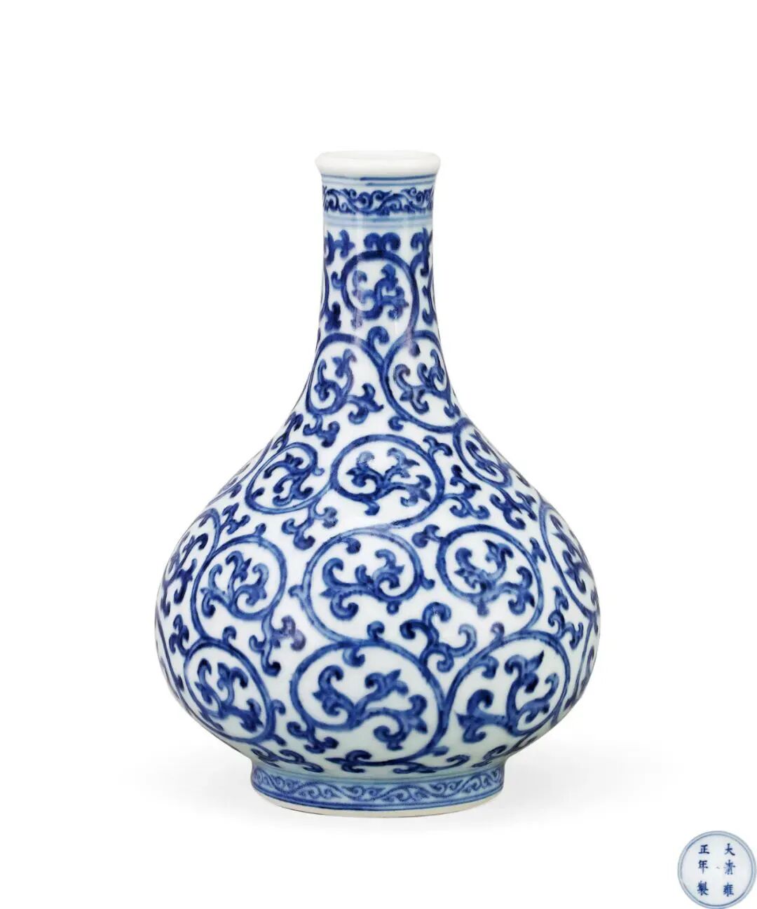 清雍正·青花仿宣德卷草纹小胆式瓶