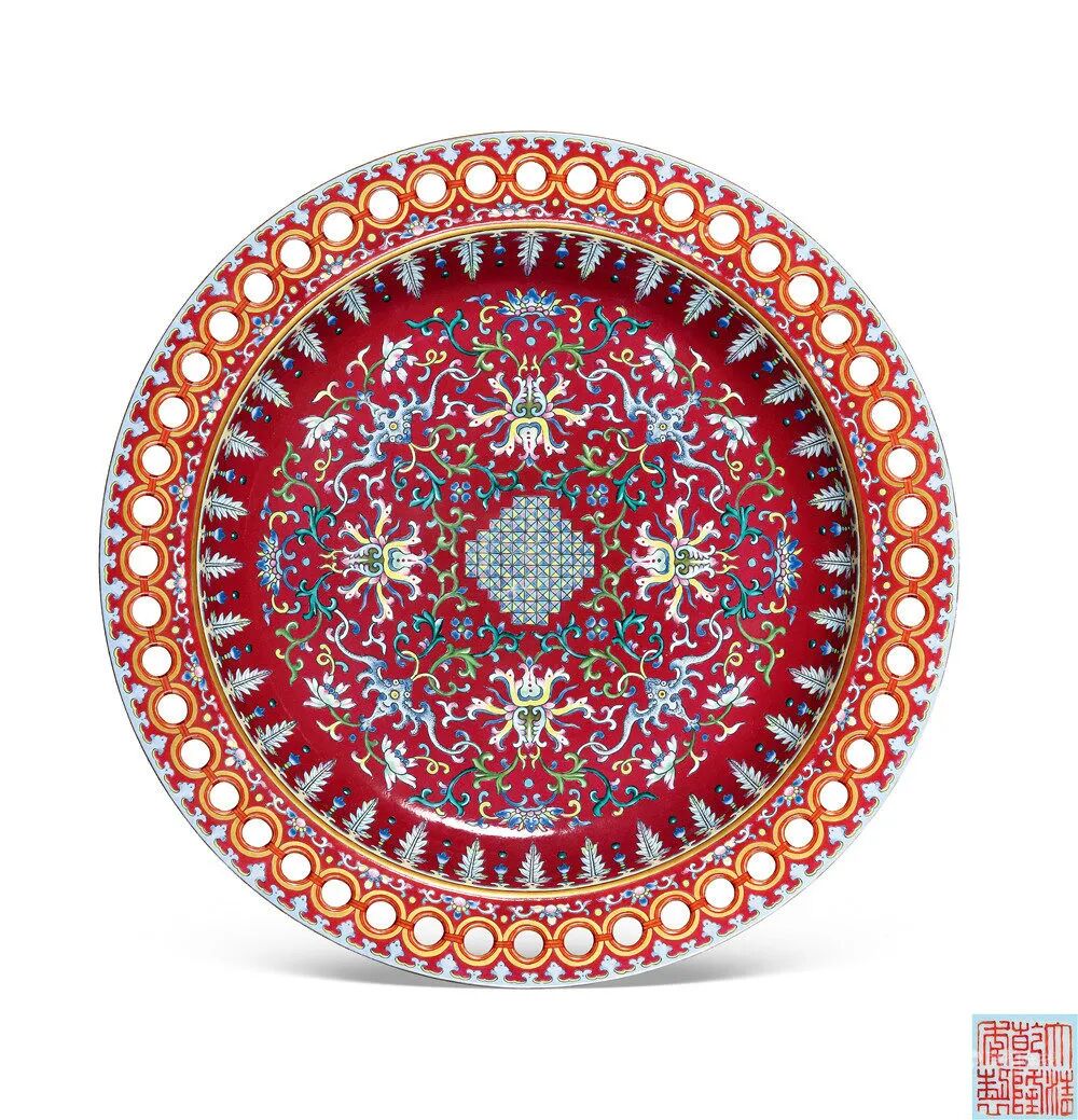 清乾隆·洋彩胭脂紫地宝相花镂空大盘