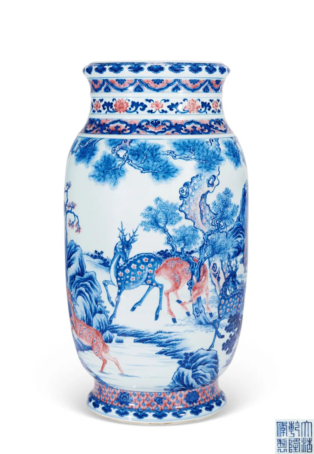 清乾隆·唐英制青花釉里红“松龄仙鹿”图灯笼尊