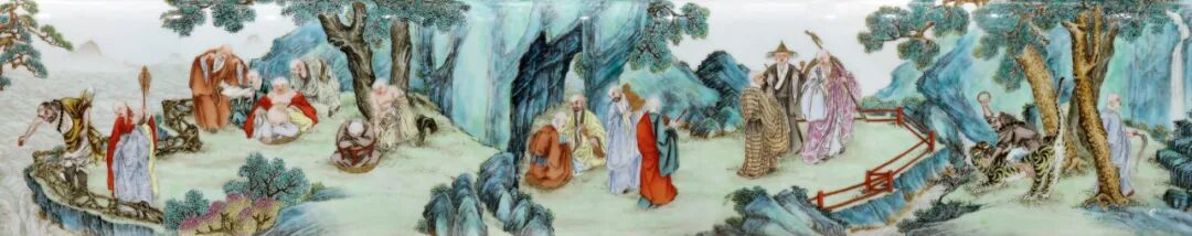 此次拍卖“百万级别”的瓷器中最闪耀的明星无疑是清乾隆·洋彩绿地轧道洋花通景「十八罗汉」双耳瓶,以747.5万元成交,清雍正·粉彩及珐琅彩「梅竹先春」芝仙祝寿图碗,782万元成交。