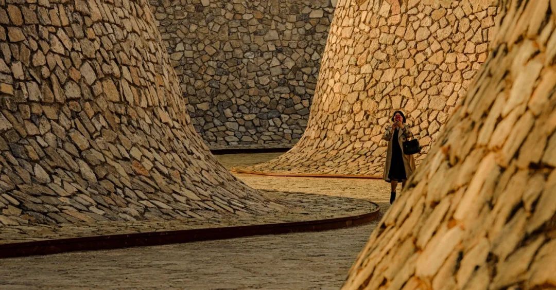 毛石,是场地时代更迭的见证者。我们采用场地原有的齐鲁毛石,加工成石料贴面