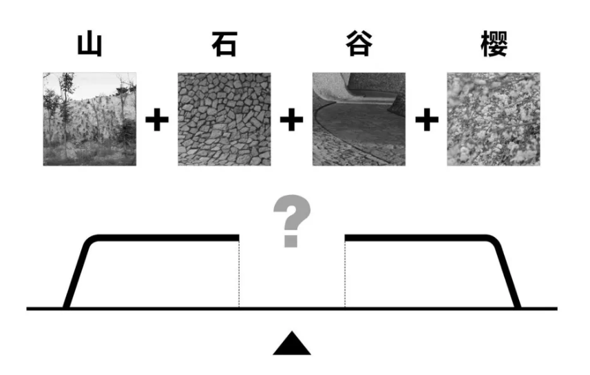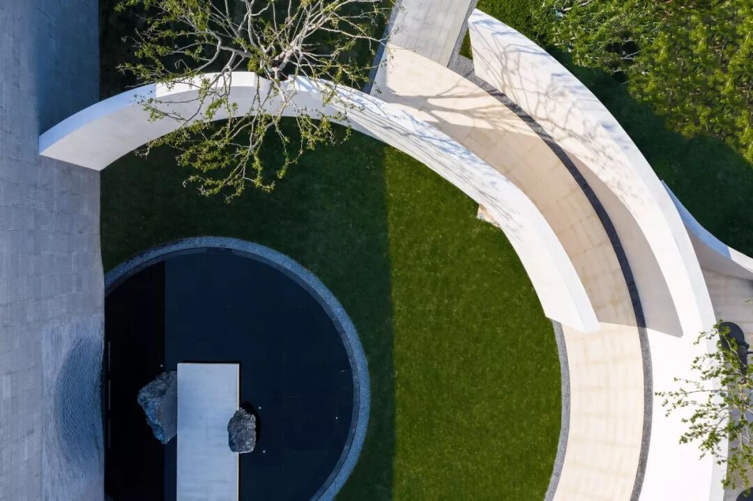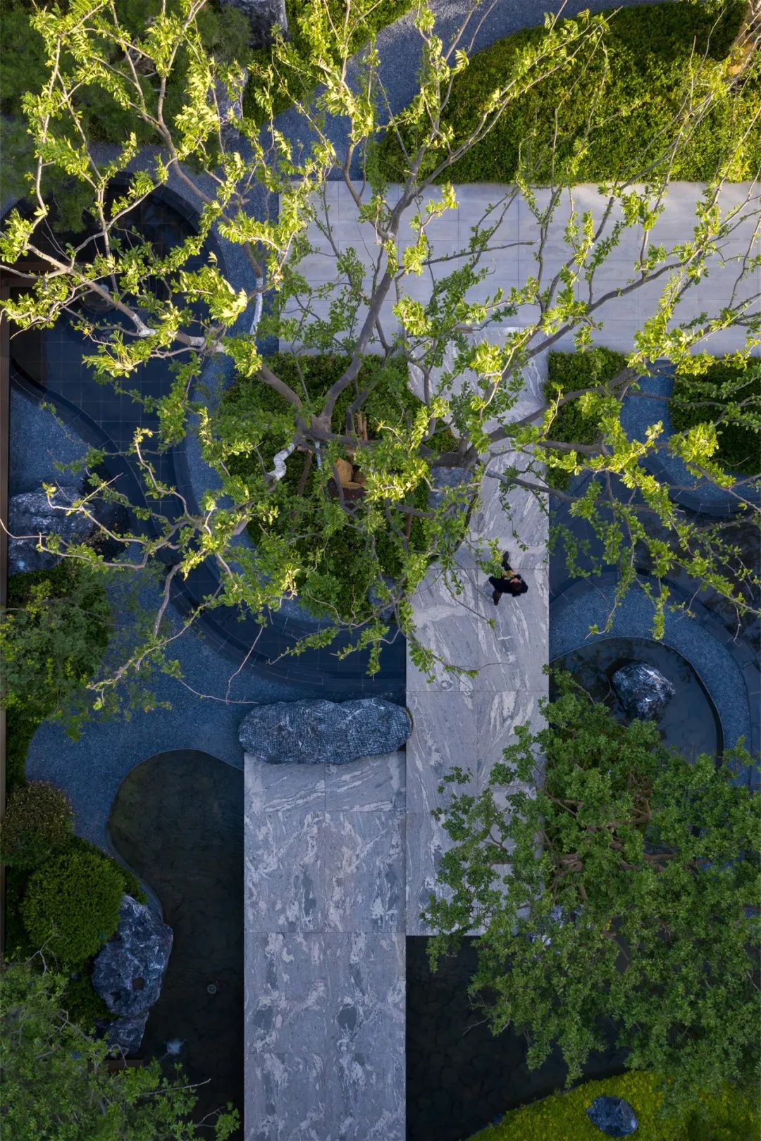 ◎景石、树木、铺装肌理皆由圆形水池而生成