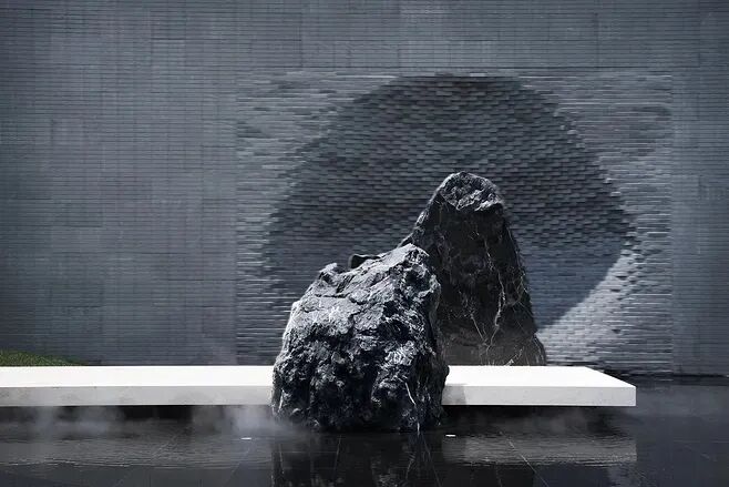 用现代材料诠释流水意境,松树和泉水一动一静,动静结合,相映生辉。一山一水,一草一木,一石一泉,皆是浪漫。