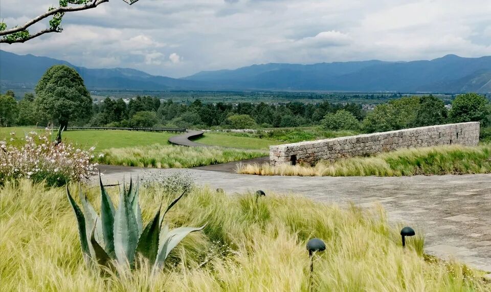 于砾石傍道的灵动汀步上游走,似梦非梦,寻光而入,林荫下的斑驳连接场地语境,云雾缭绕间,俯嗅青苔入诗的沁雅,目睹上帝的一抹脱俗。“树影入镜,绿野铺地”,亦真亦幻,自然疏离,观者至此眼方开,目方明,撞见萤河尘林。