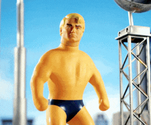 而STRETCH ARMSTRONG在上个世纪70年代后的风靡与流行,也让曾经的美国总统川普,都不堪忍受其压力;只因为STRETCH ARMSTRONG那与他神似的发型,与毫不相关的八块腹肌,令他总是被人们放在一起来对比,更是摆出了各种令人脸红心跳的造型。