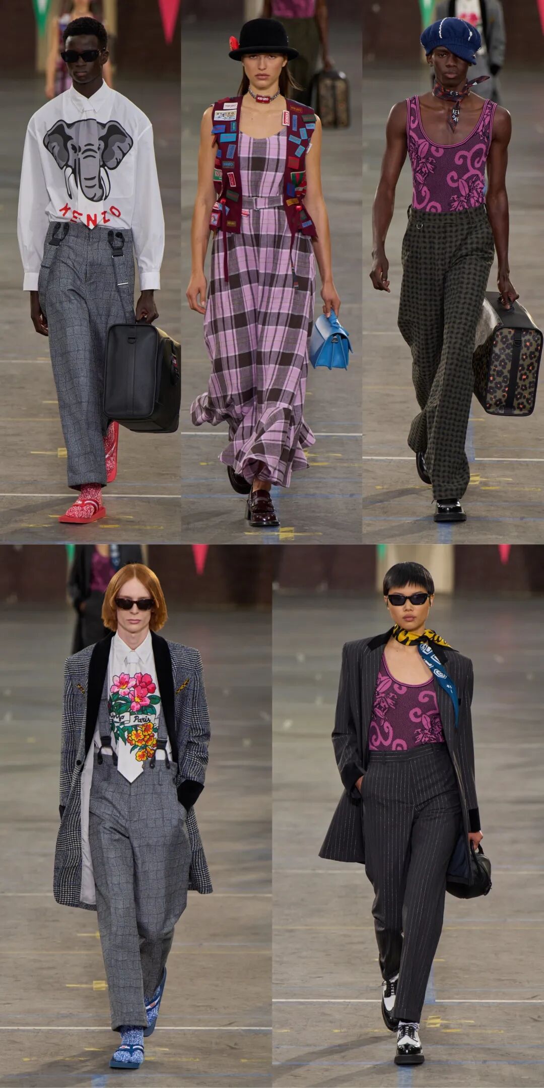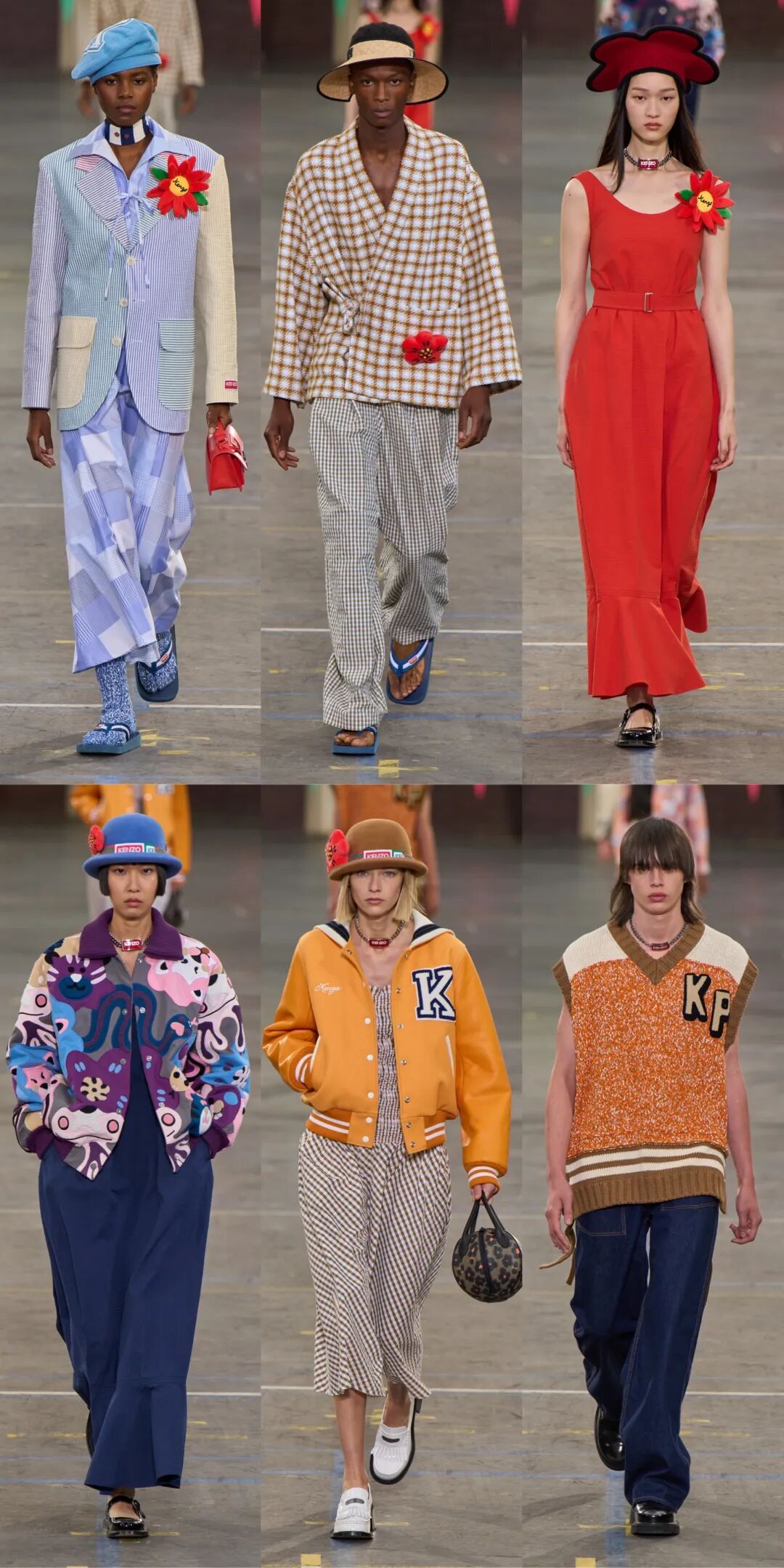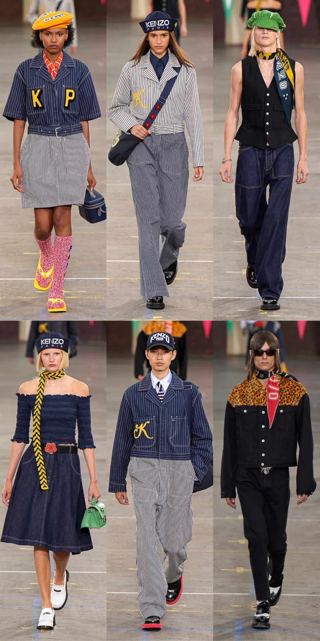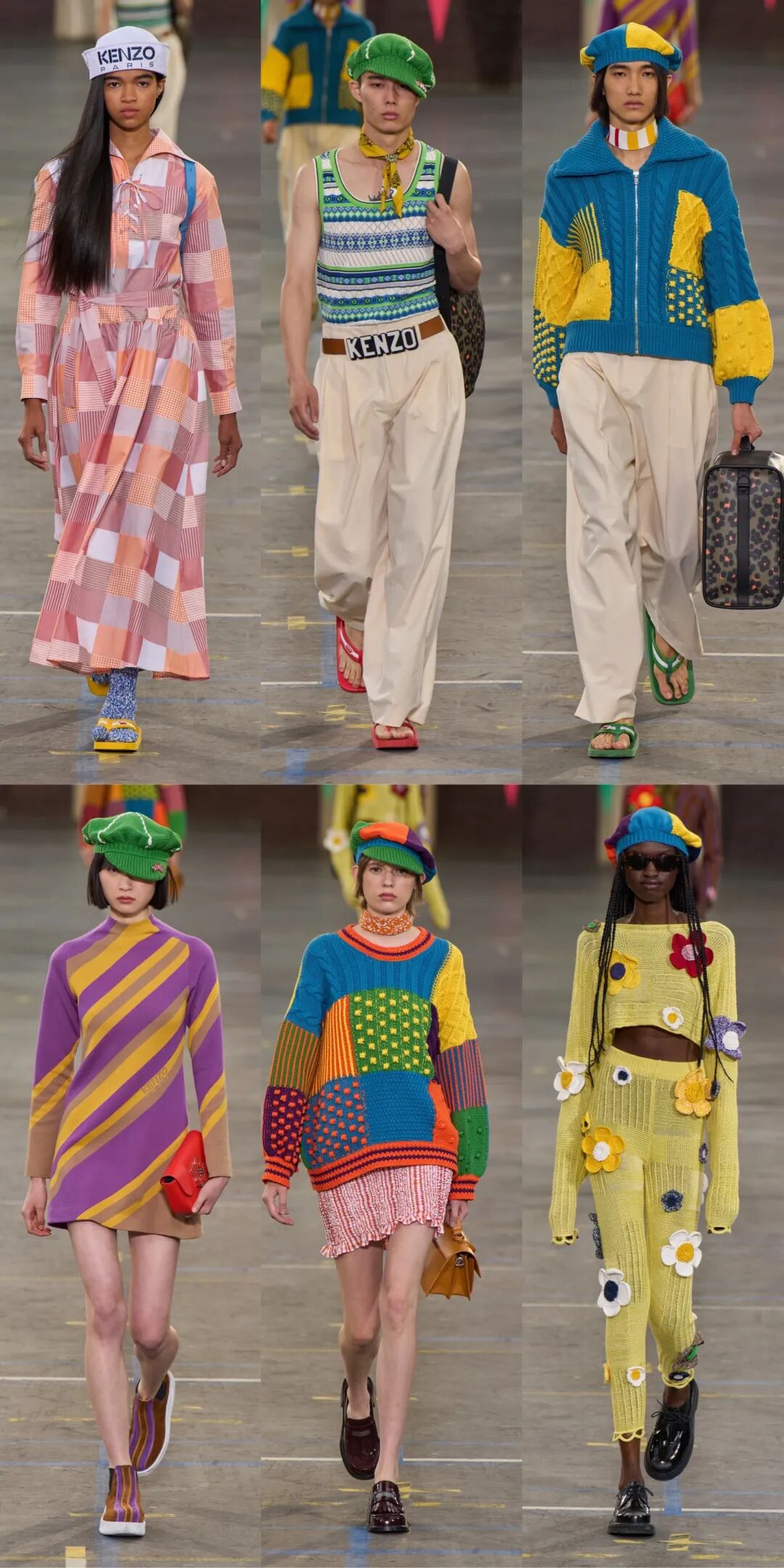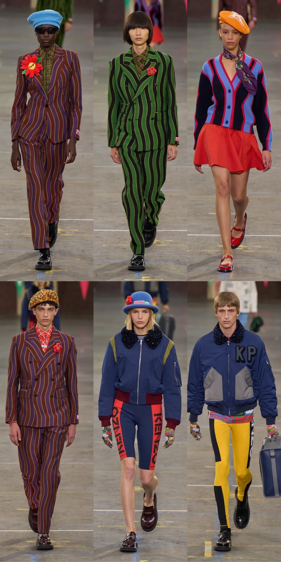 这是潮流教父 Nigo 担任 KENZO 艺术总监发布的第二个系列,欢乐的航海与校园风格贯穿整场秀,各种条纹、格纹图案与色块增添无限青春气息,花朵元素也频繁点缀其中,逐渐成为了品牌新的标志性符号。