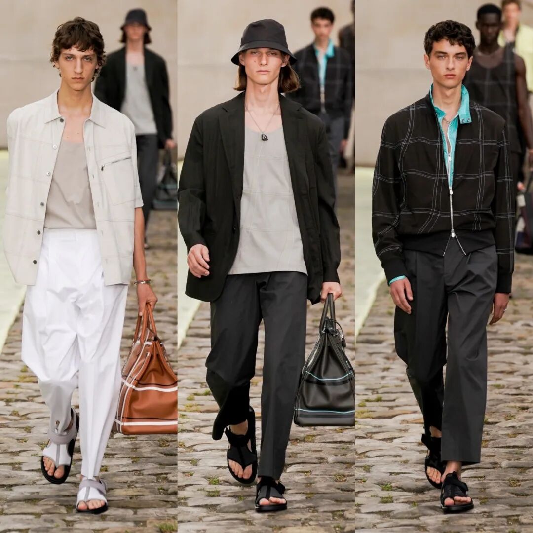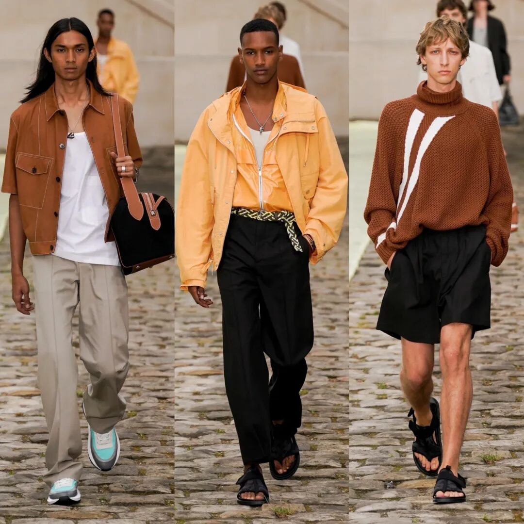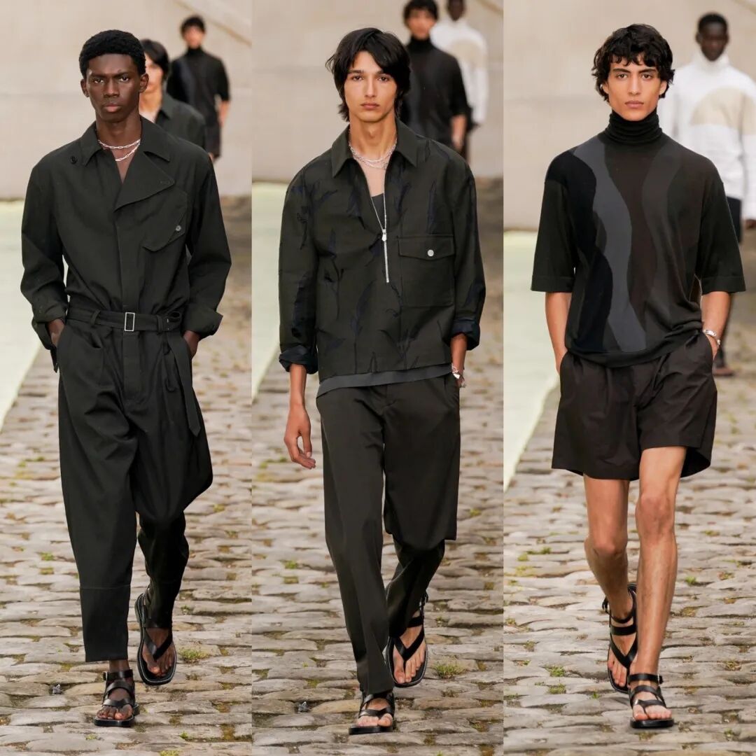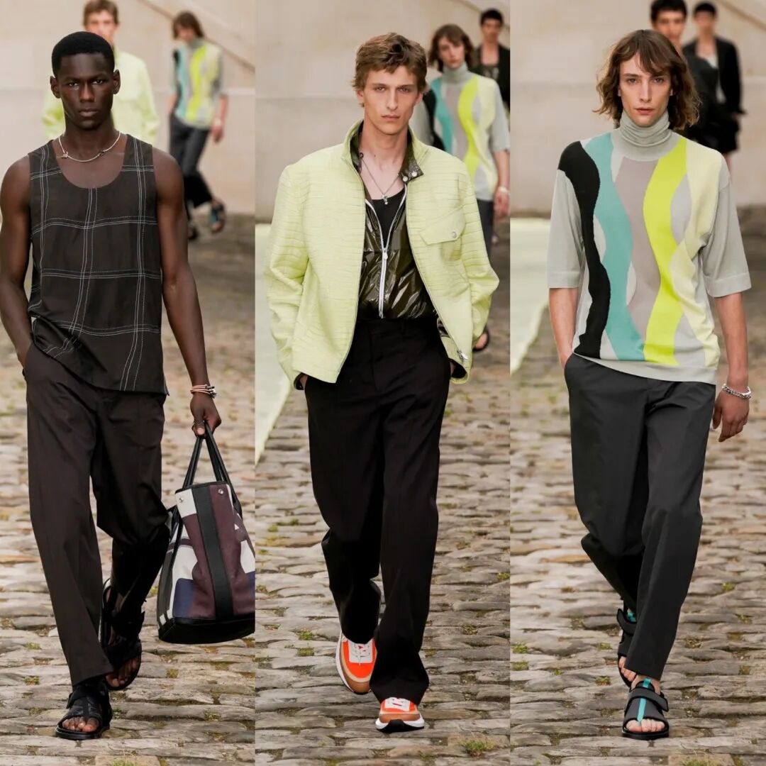 爱马仕男装本季以黑白与大地色系为主,当中点缀上温暖的亮色,实穿的同时富含春夏气息;当中的波浪、日出、海马、龙虾等几何图案更是徒增一丝趣味,让整个系列突显年轻态。