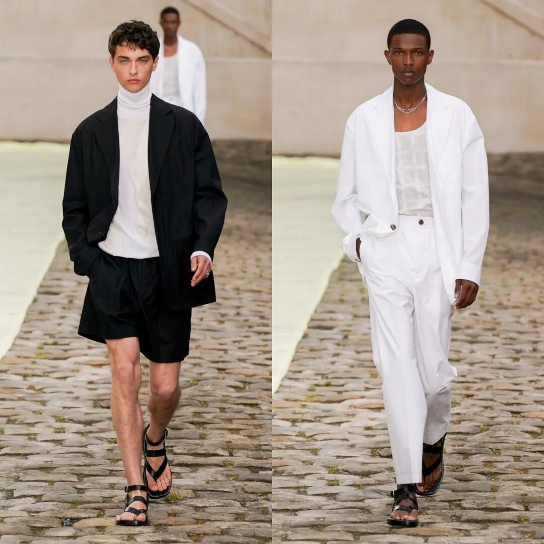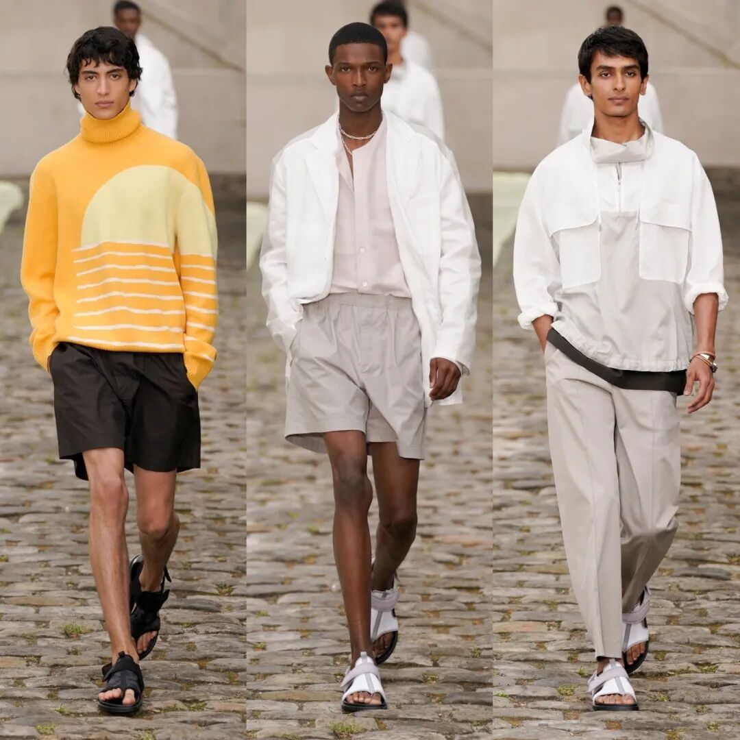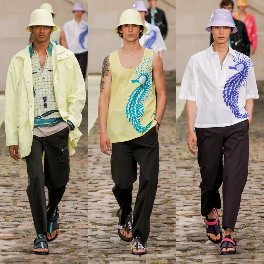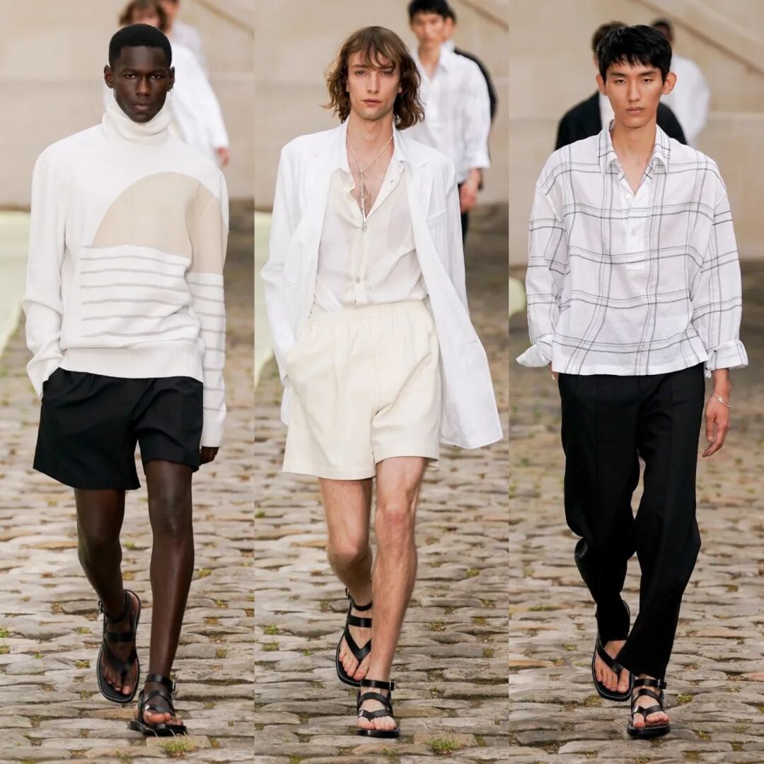 爱马仕男装本季以黑白与大地色系为主,当中点缀上温暖的亮色,实穿的同时富含春夏气息;当中的波浪、日出、海马、龙虾等几何图案更是徒增一丝趣味,让整个系列突显年轻态。