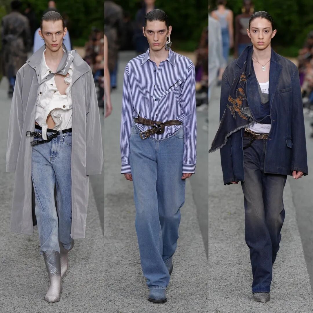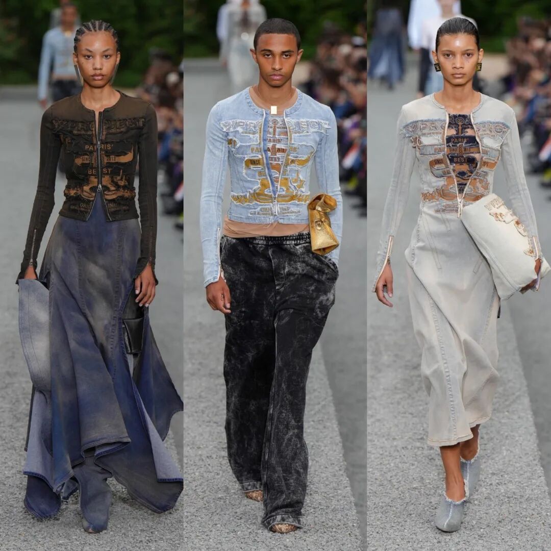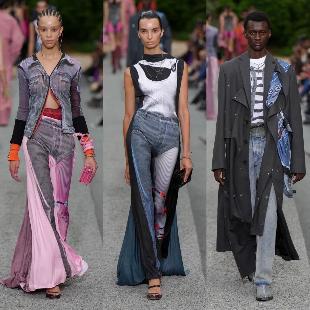 Glenn Martens 对牛仔的创新一路高歌猛进,层出不穷的设计单品新颖呈现,颠覆人们对牛仔新的期望… 本季还有超细吊带背心、仿牛仔图案印花、不规则拼接处理等细节值得留意。