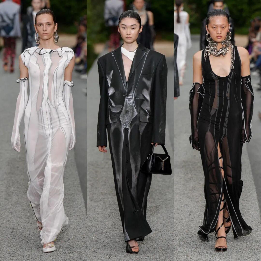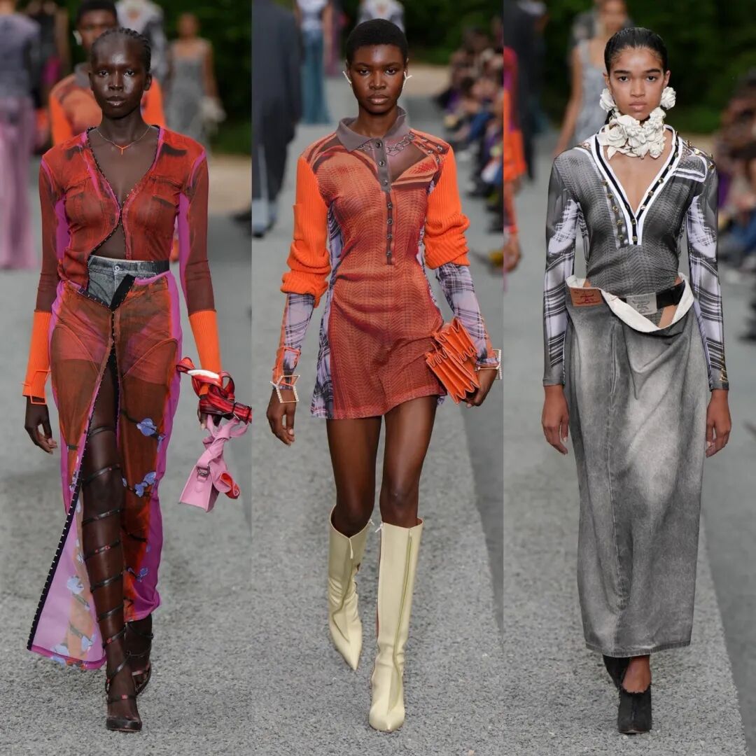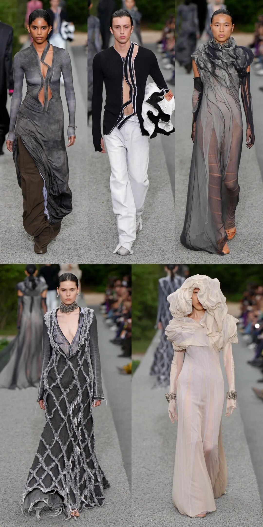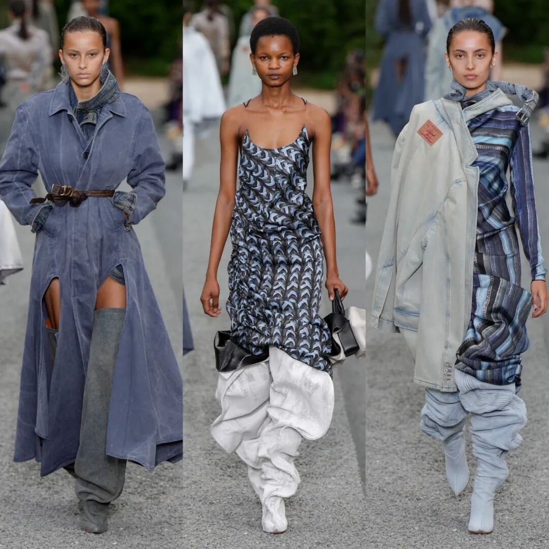 Glenn Martens 对牛仔的创新一路高歌猛进,层出不穷的设计单品新颖呈现,颠覆人们对牛仔新的期望… 本季还有超细吊带背心、仿牛仔图案印花、不规则拼接处理等细节值得留意。