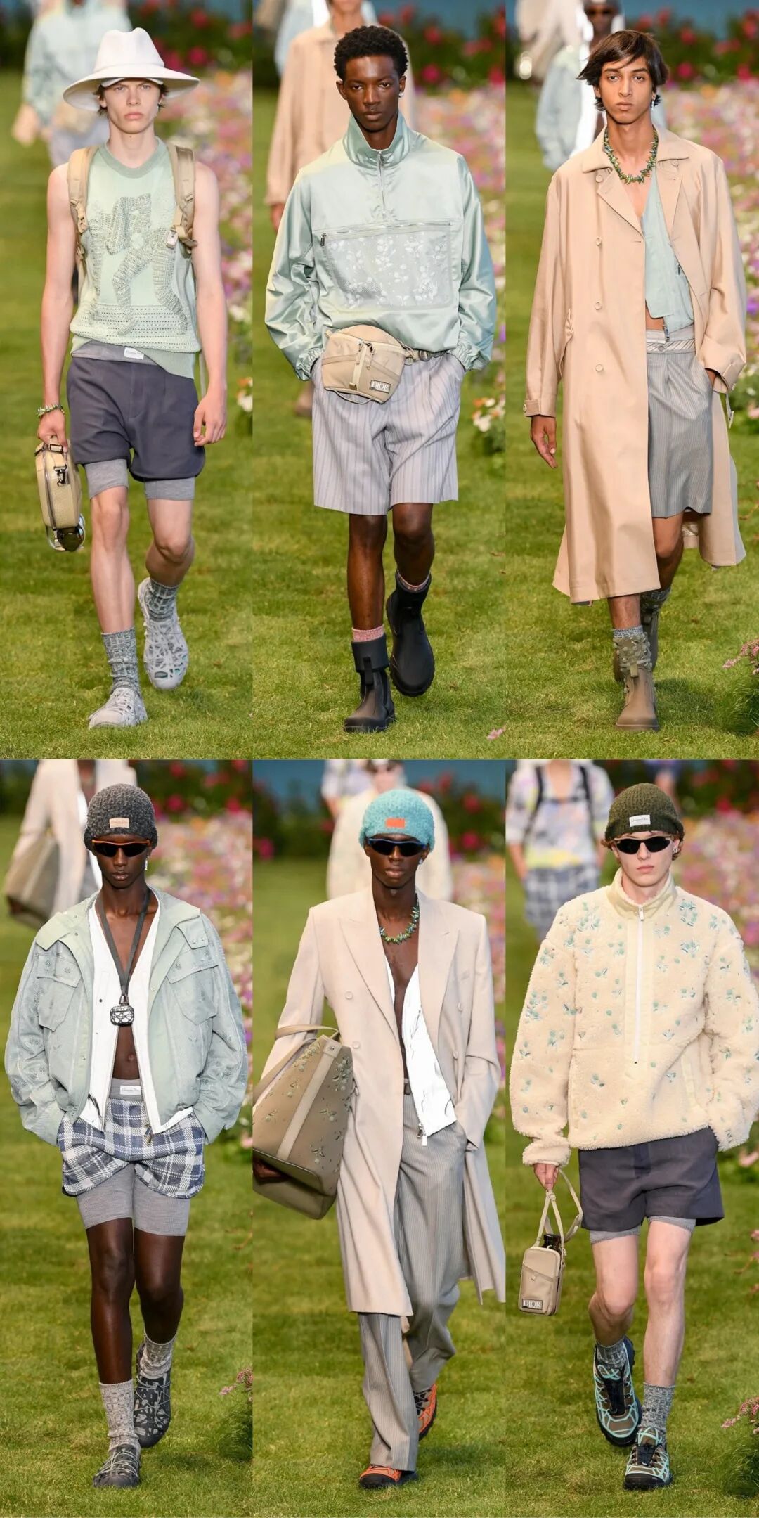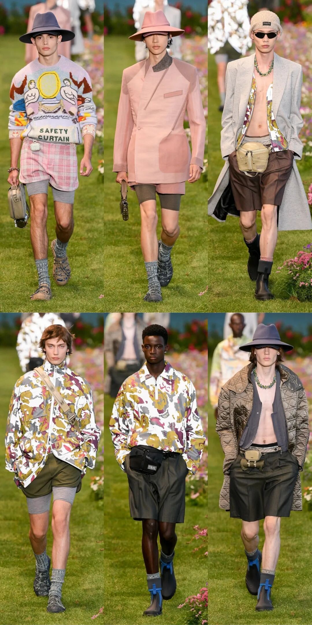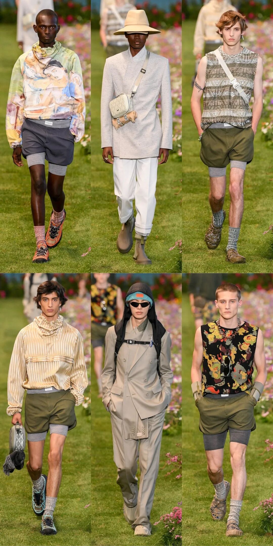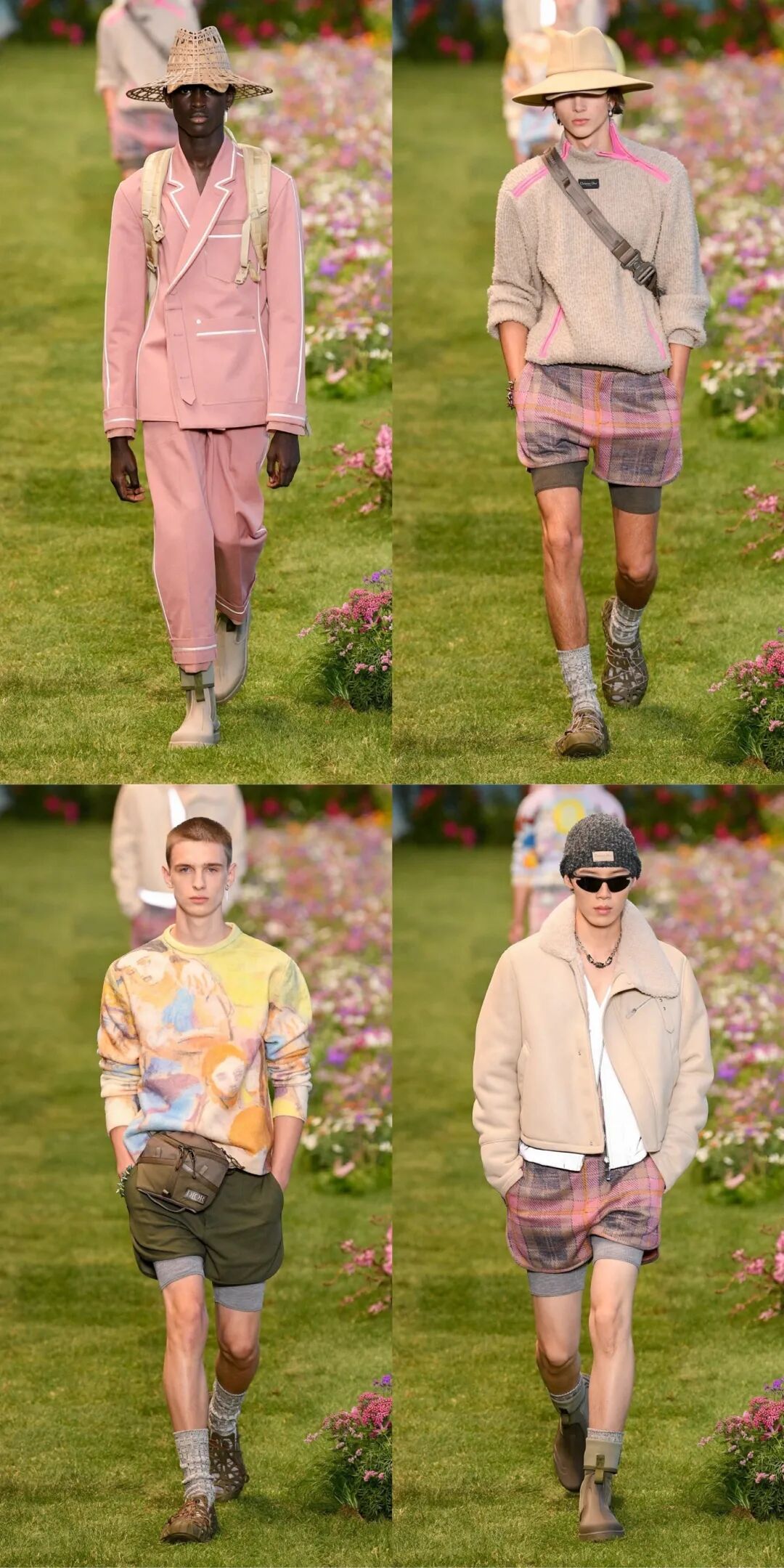 迪奥男装本季的时装故事追溯至迪奥先生的「梦中乌托邦」格兰维尔花园,可见秀场被草地和一路鲜花装点一新,弥漫着浪漫的色调与氛围,让本季男装也沾染上丝丝花香气息…