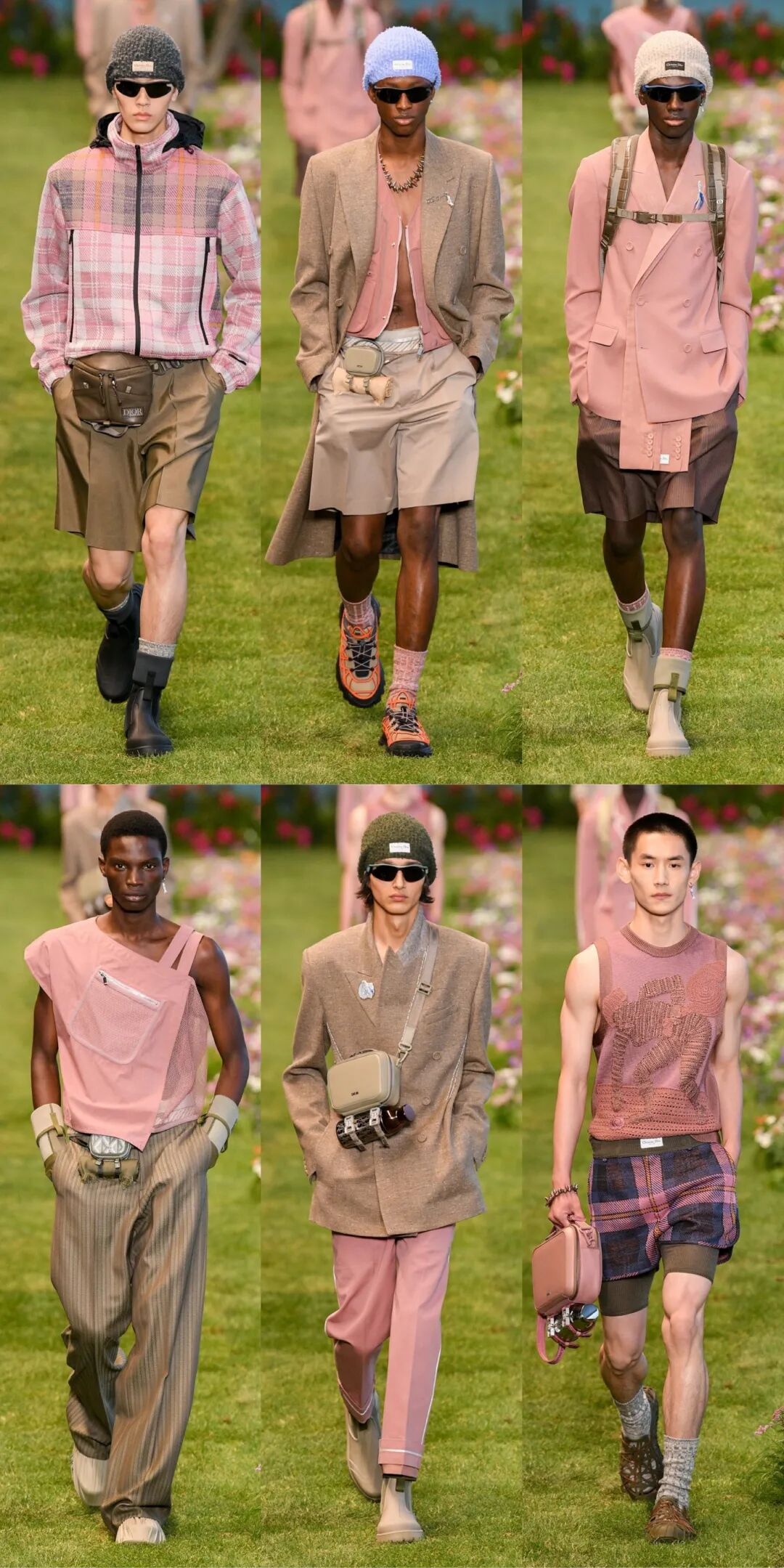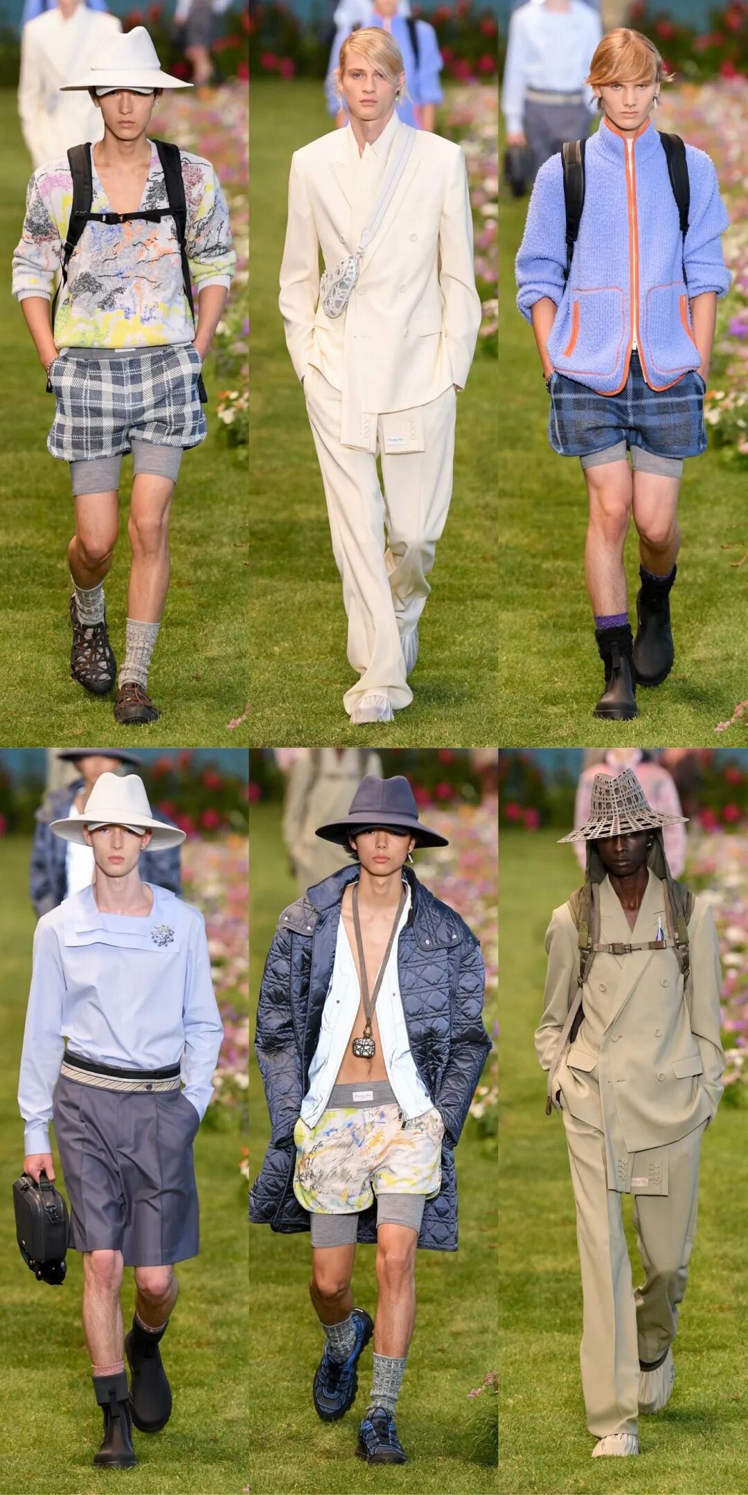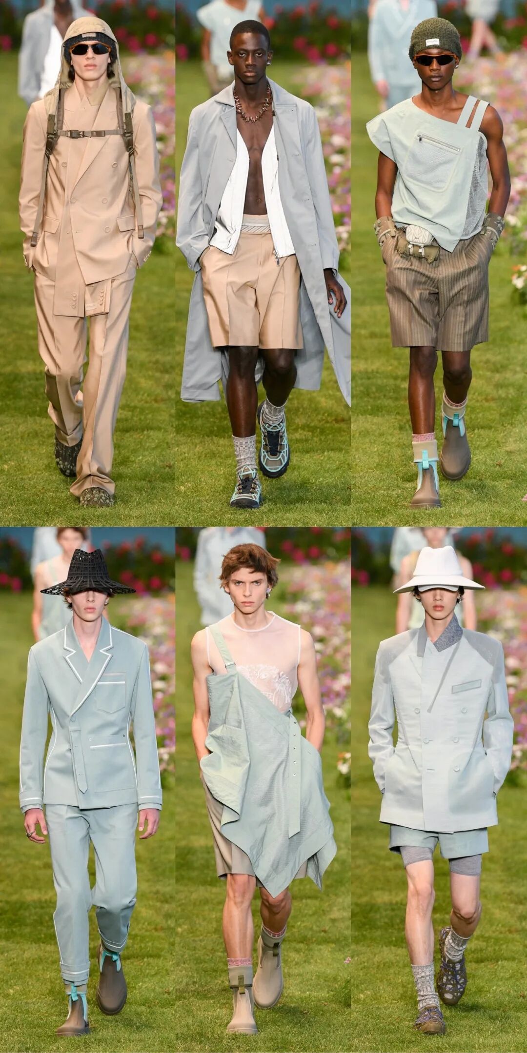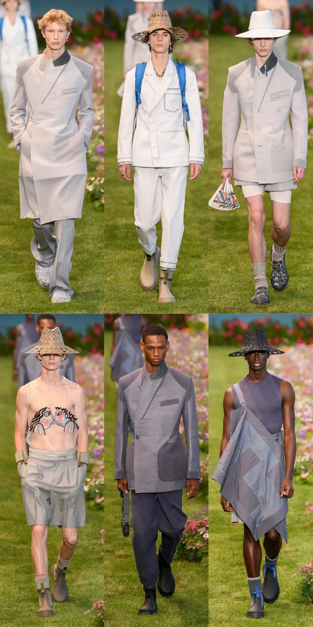 迪奥男装本季的时装故事追溯至迪奥先生的「梦中乌托邦」格兰维尔花园,可见秀场被草地和一路鲜花装点一新,弥漫着浪漫的色调与氛围,让本季男装也沾染上丝丝花香气息…