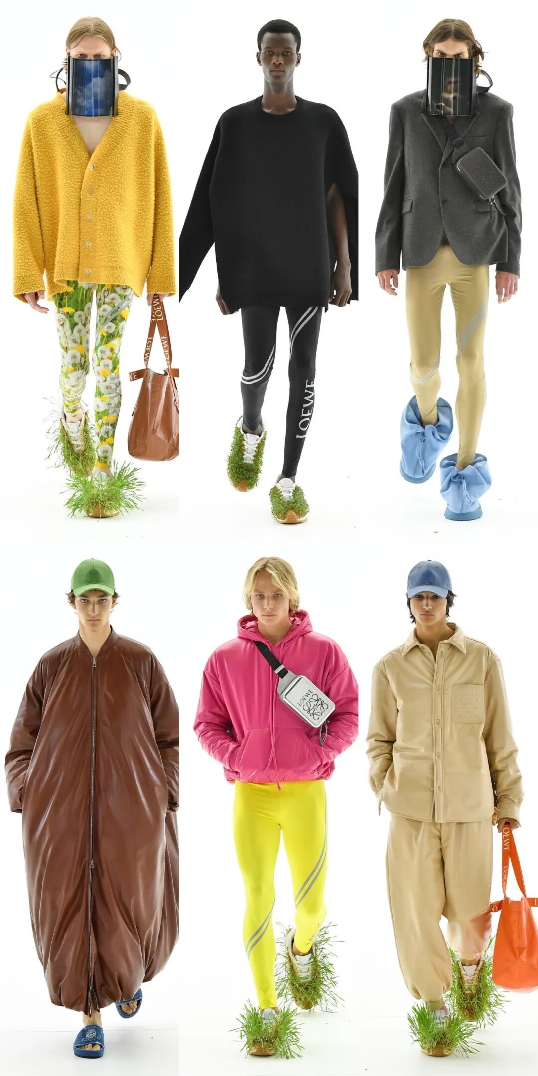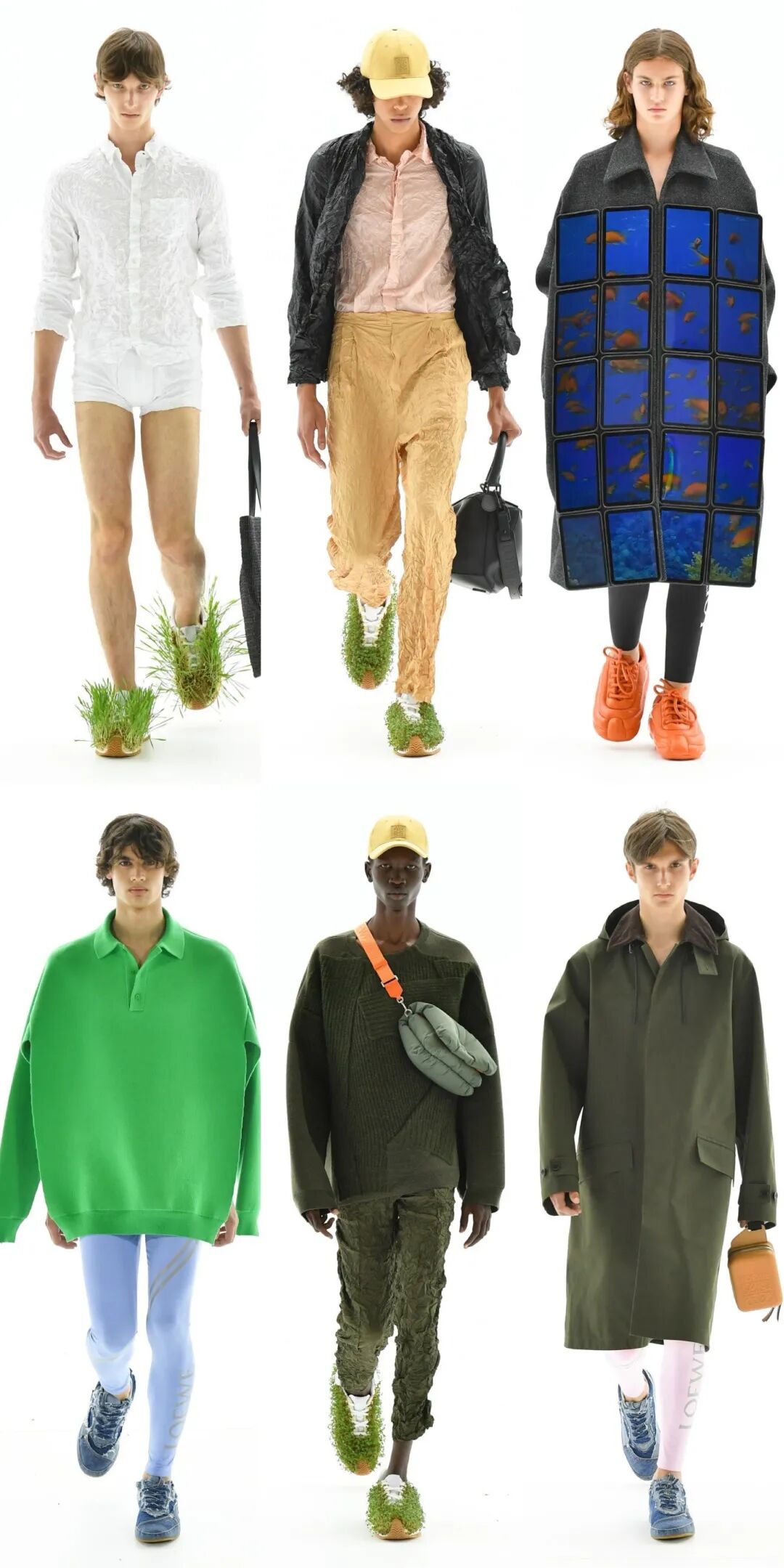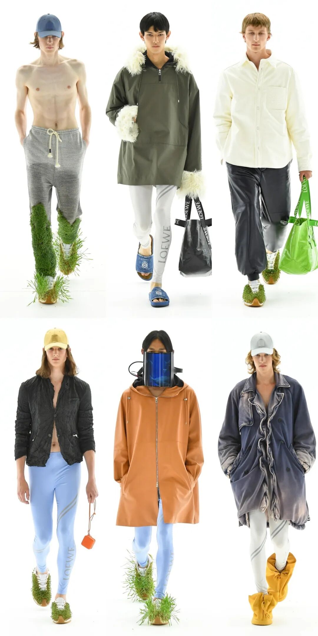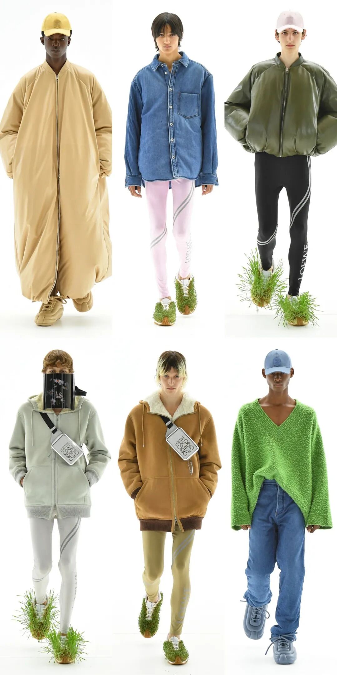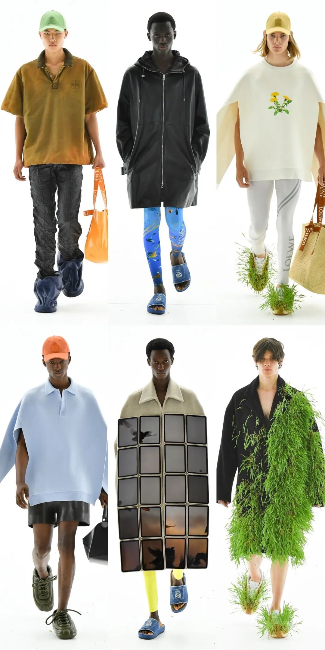Jonathan Anderson 让罗意威每一季的设计都变得有趣起来,本季男装同样不乏亮点:长满草的鞋屡与各类单品、由20个电子屏组成流动画面的大衣、充气感的羽绒服、色彩斑斓的骑行紧身裤… 又一次将科技与时尚相结合。
