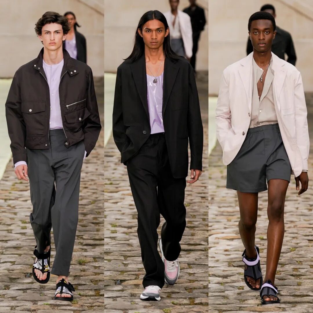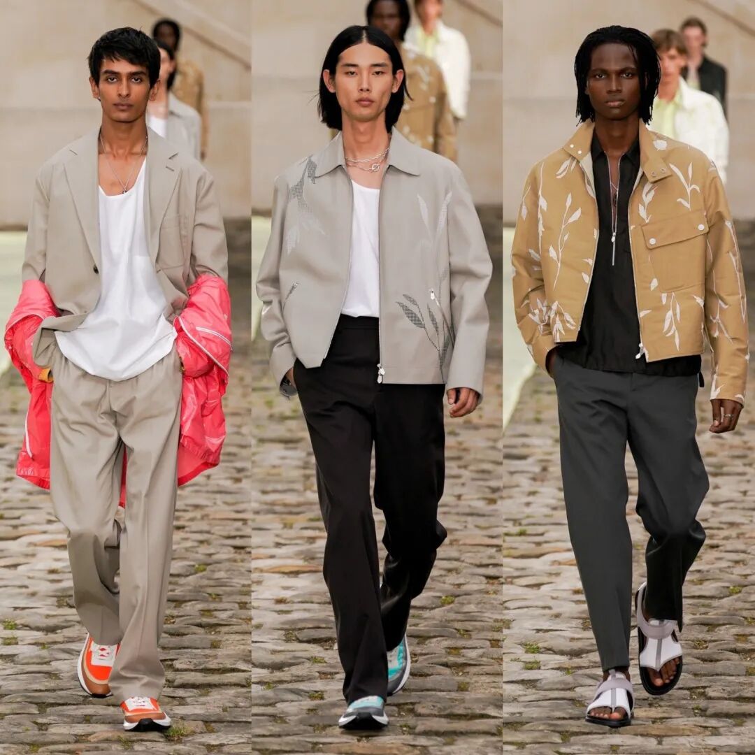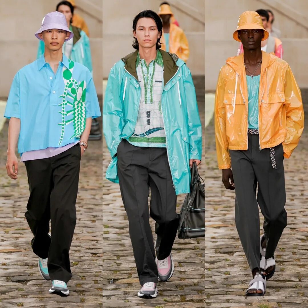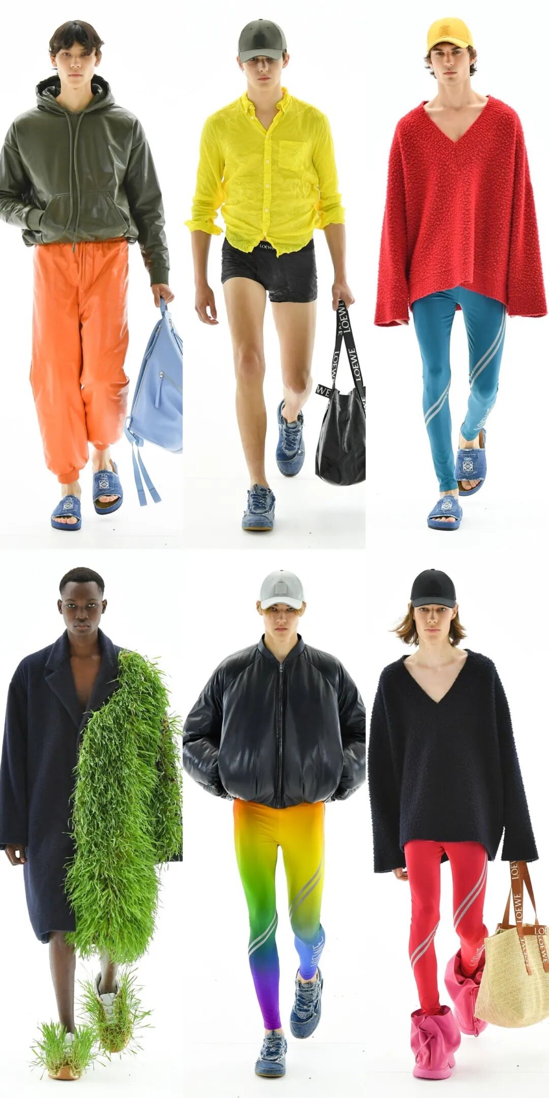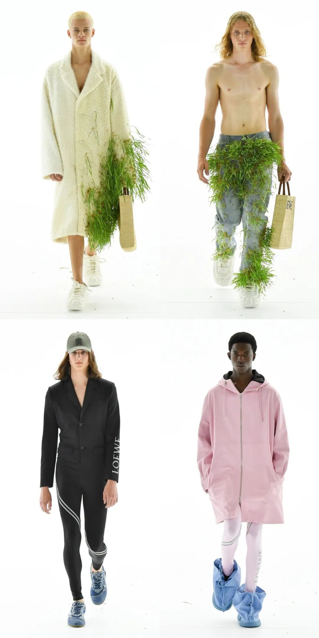 Jonathan Anderson 让罗意威每一季的设计都变得有趣起来,本季男装同样不乏亮点:长满草的鞋屡与各类单品、由20个电子屏组成流动画面的大衣、充气感的羽绒服、色彩斑斓的骑行紧身裤… 又一次将科技与时尚相结合。