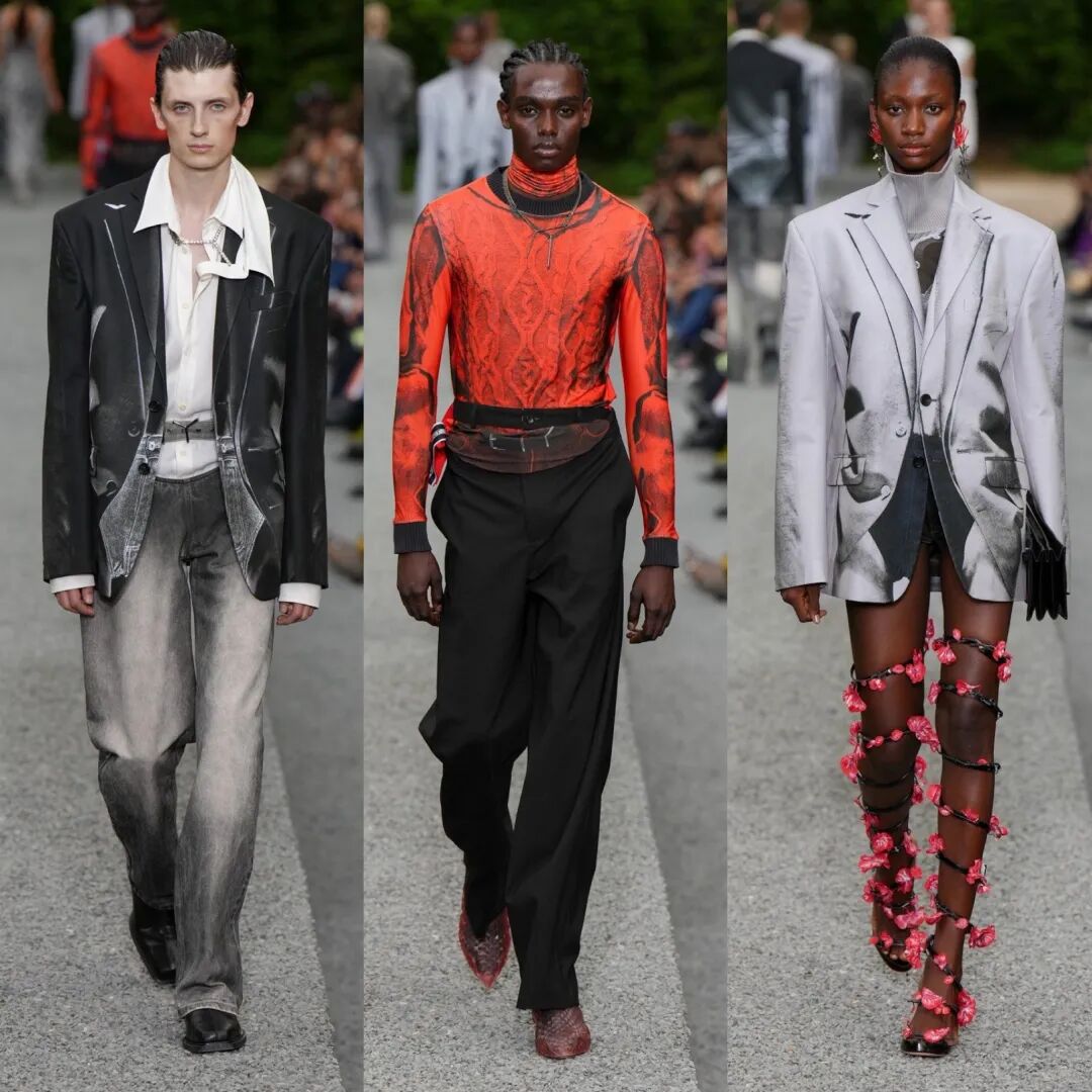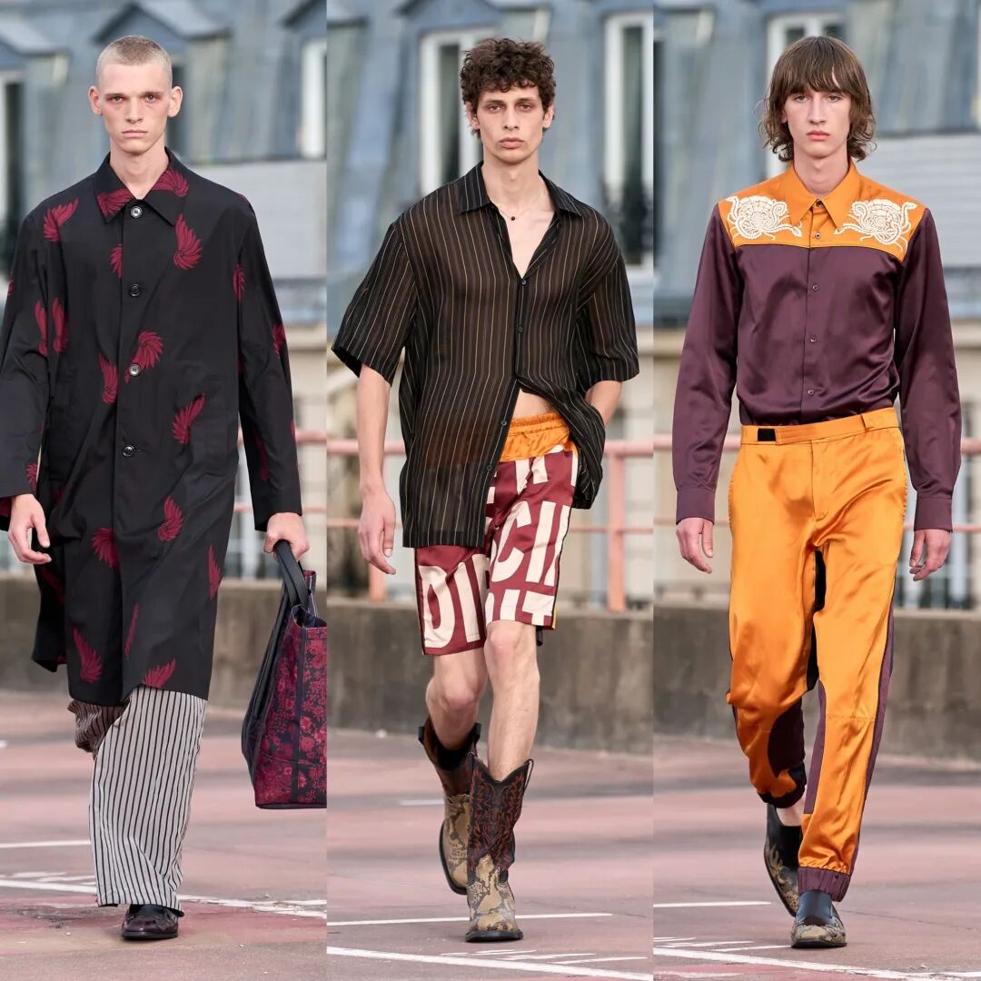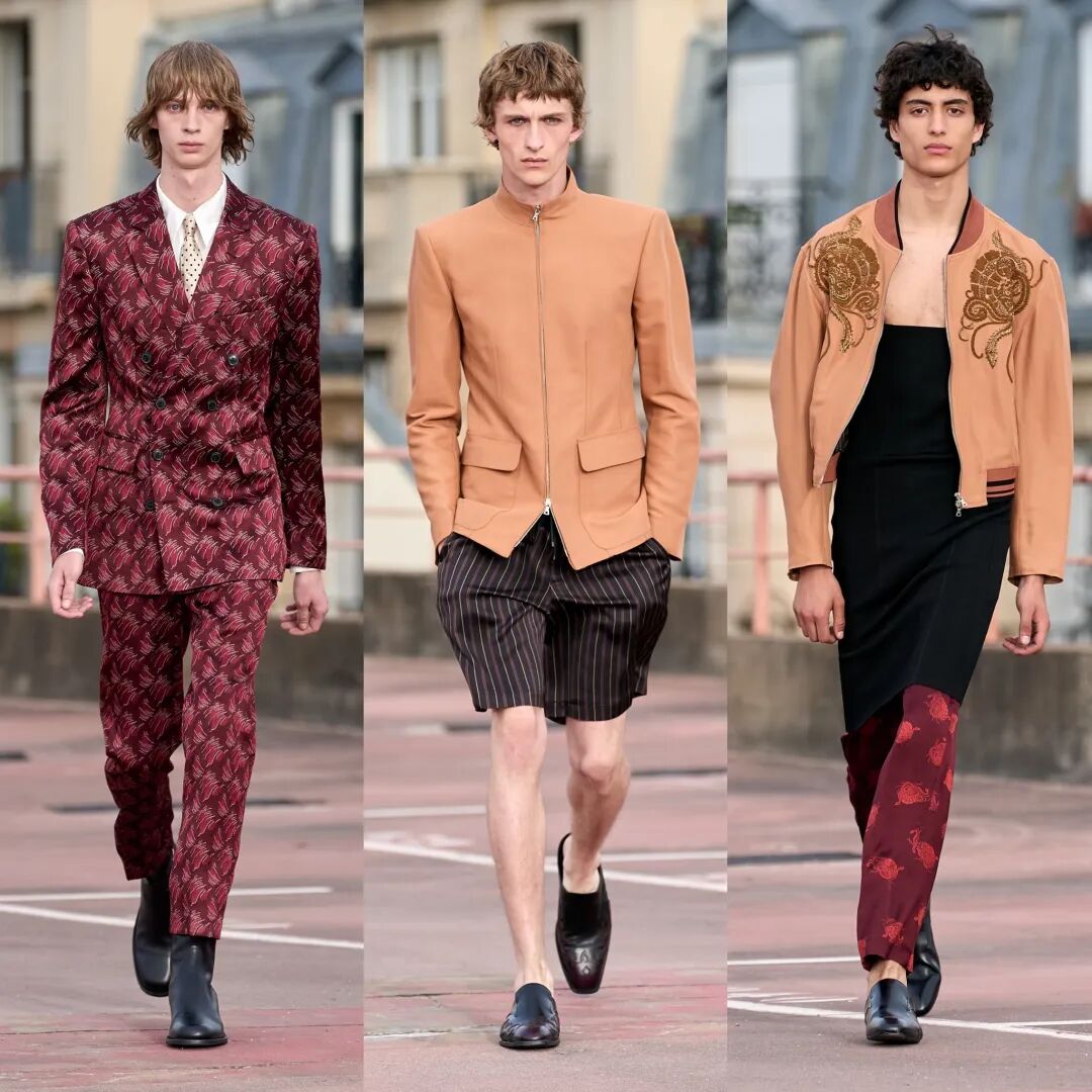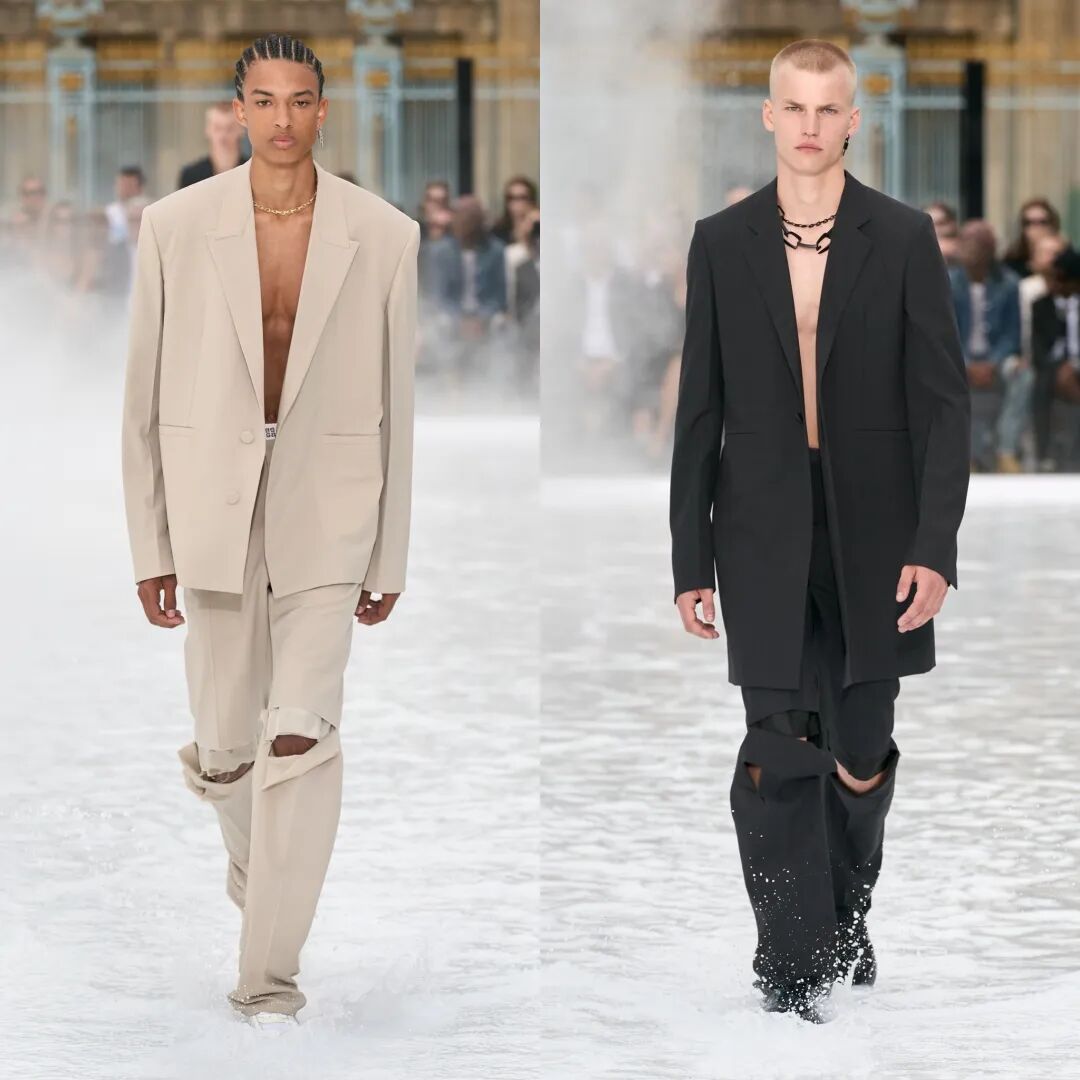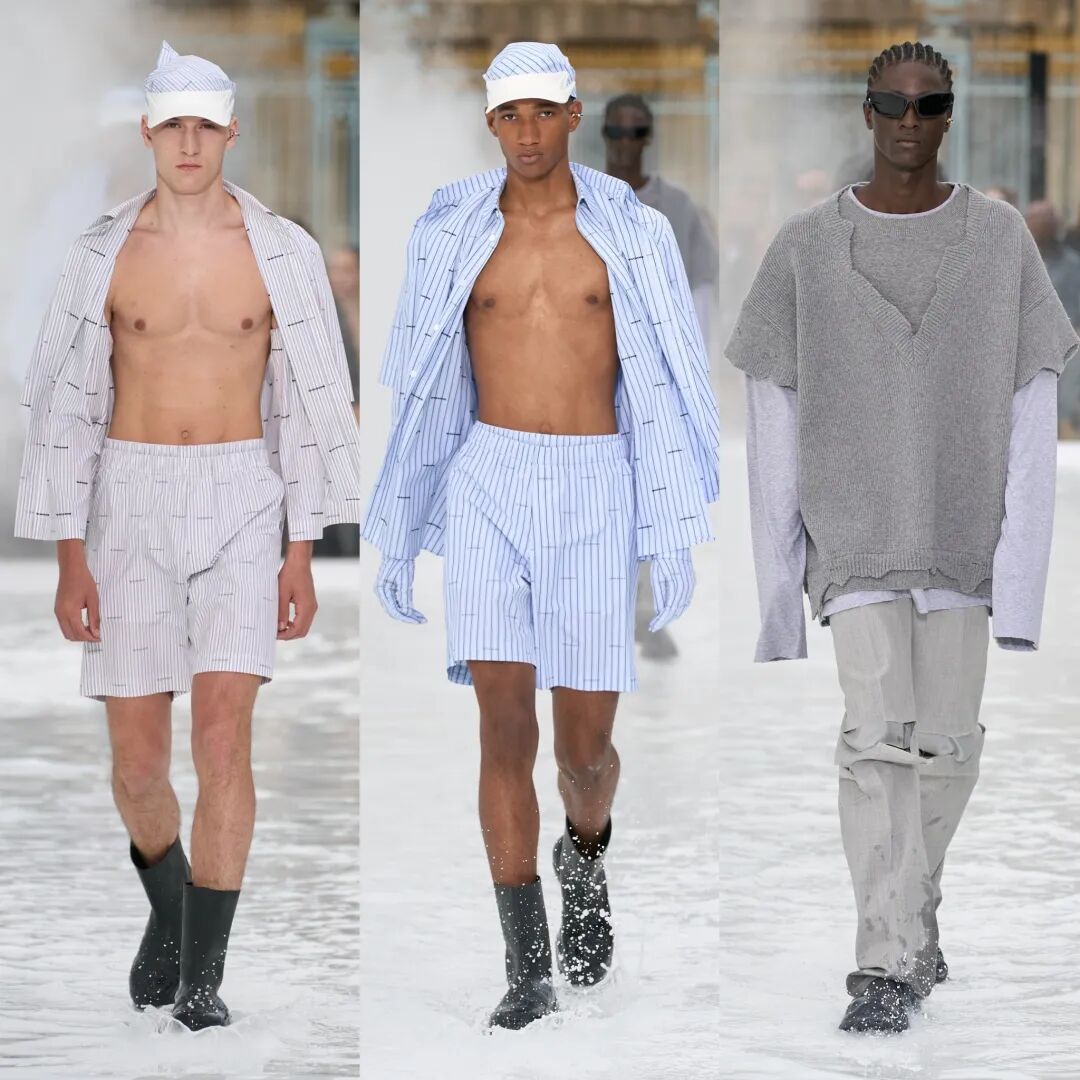 Jonathan Anderson 让罗意威每一季的设计都变得有趣起来,本季男装同样不乏亮点:长满草的鞋屡与各类单品、由20个电子屏组成流动画面的大衣、充气感的羽绒服、色彩斑斓的骑行紧身裤… 又一次将科技与时尚相结合。