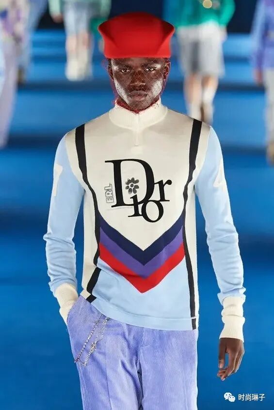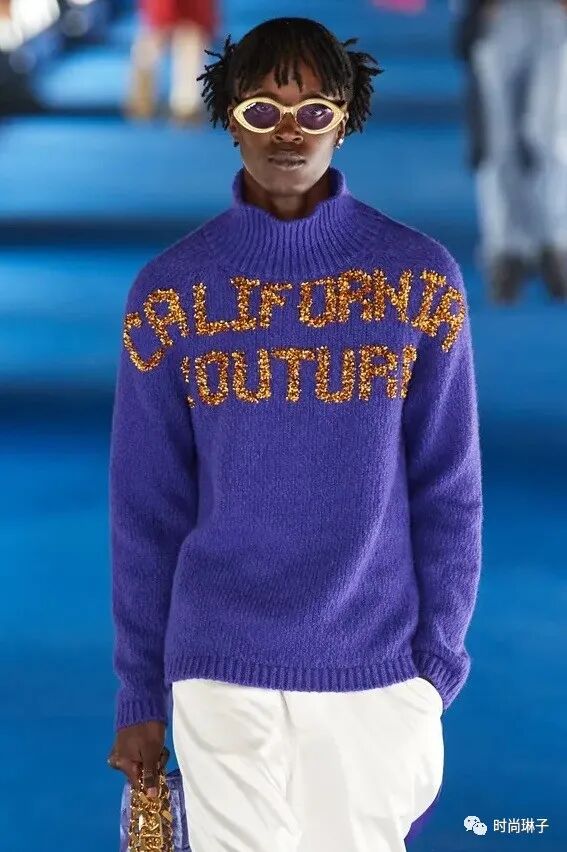 客座设计师Eli Russell Linnetz个人品牌ERL标志性的波浪卫衣,沙滩渐变针织衫,多彩印花以及衍缝设计等休闲自在的威尼斯海滩街头潮流风尚,与迪奥精致考究的摩登风貌碰撞,诠释了崭新的世界。
