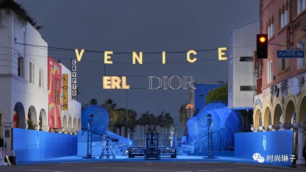 该季迪奥Dior 2023 春季男装秀选址客座设计师Eli Russell Linnetz的家乡加州威尼斯海滩举办大秀。