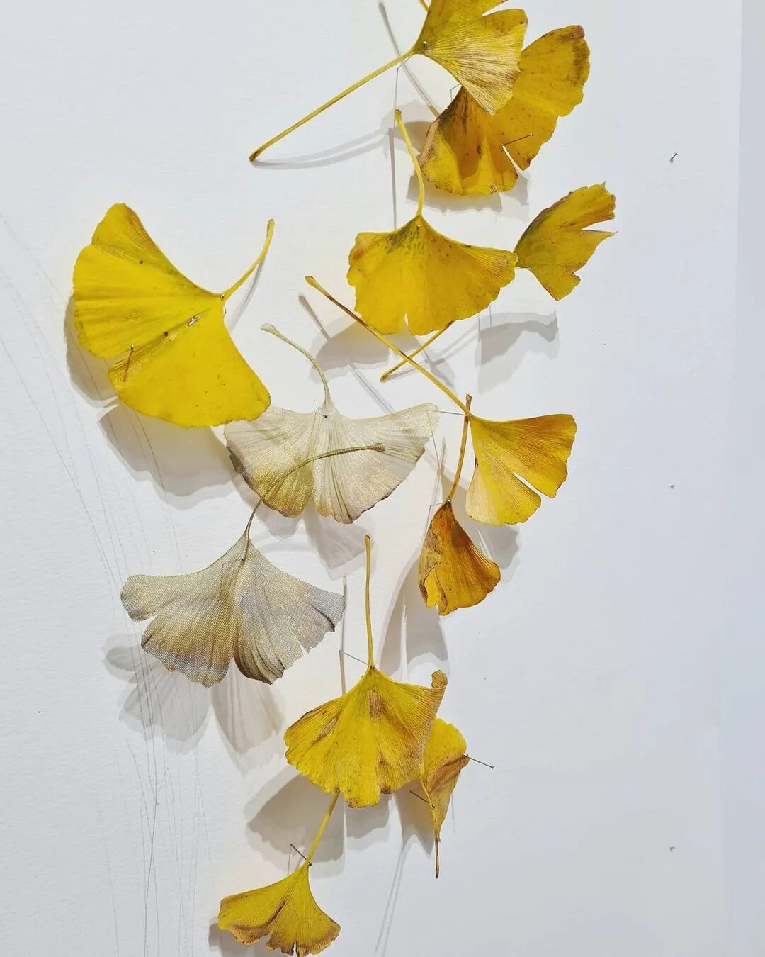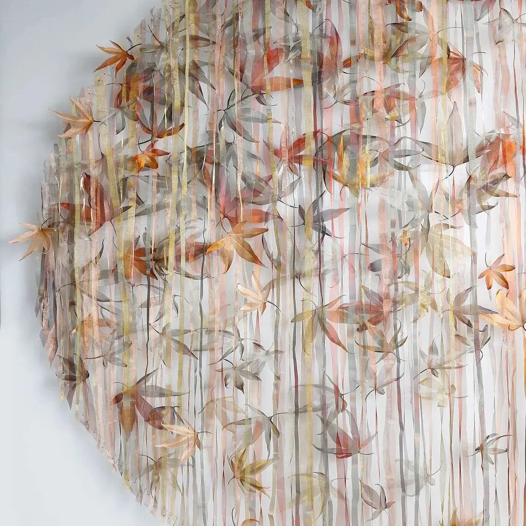 答案揭晓,麦金尼是一位金属雕塑家,她的雕塑作品都是由金属材料制作而成,无论是飞舞的小鸟还是洒落的树叶,每一件雕塑她都会亲自动手给它们涂抹上颜色,将金属变成半透明的质地,看似随意组合的图案充满了美感。