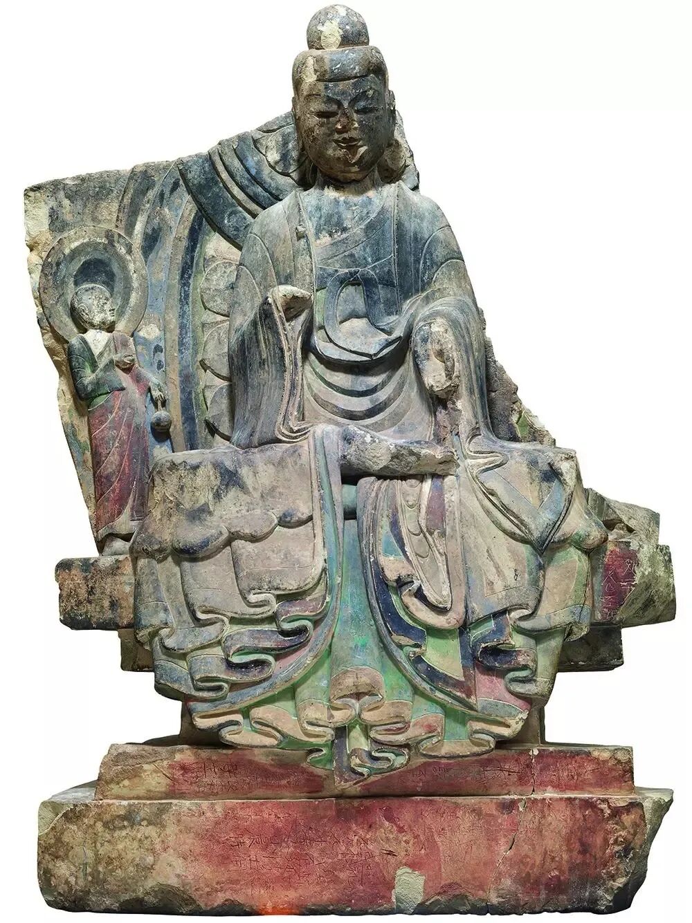 东魏贴金彩绘石雕佛菩萨三尊像