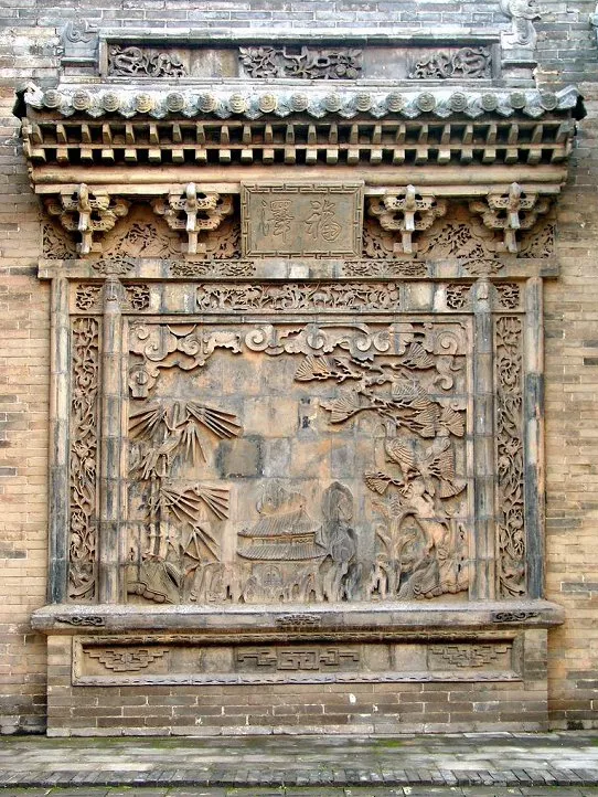 砖雕是由质地坚细的青灰砖经过精致的雕镂而形成的建筑装饰,广泛用于门楼、门套、门楣、屋檐、屋顶等处,使建筑物显得典雅、庄重。