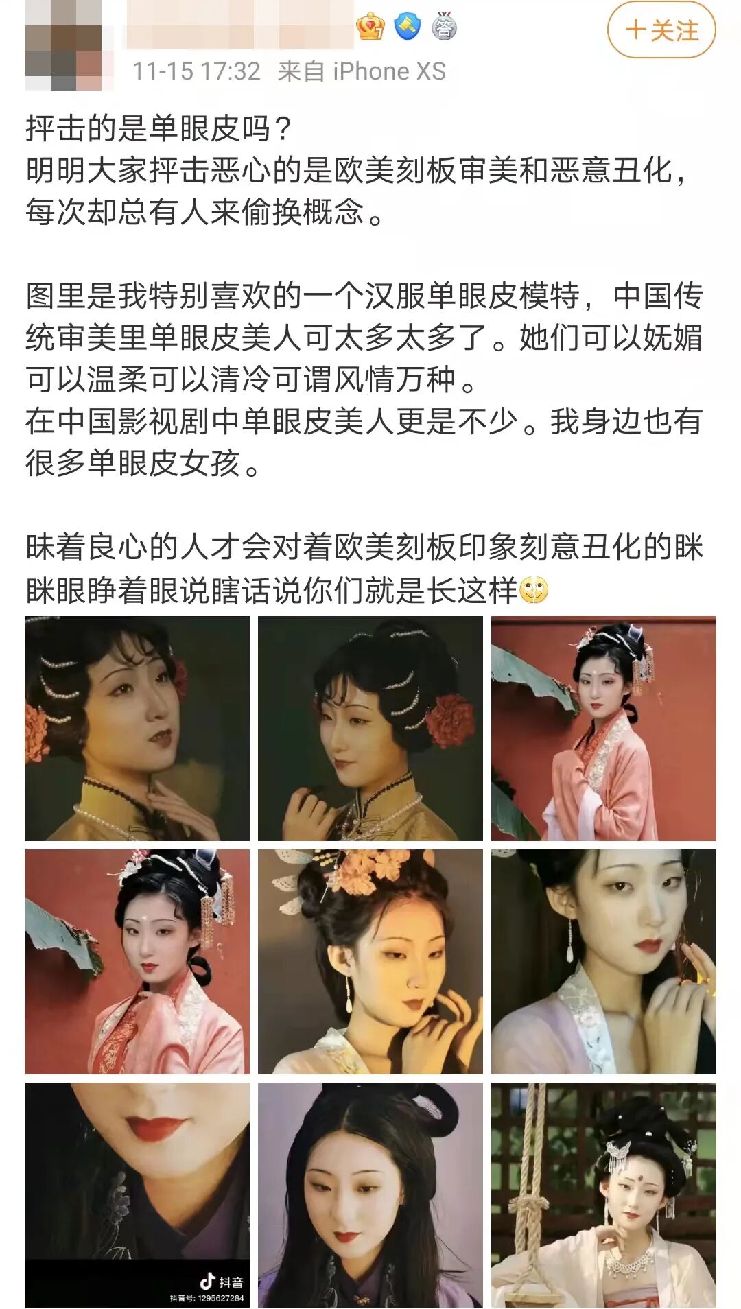 中国式“丹凤眼”列举出来作为回击