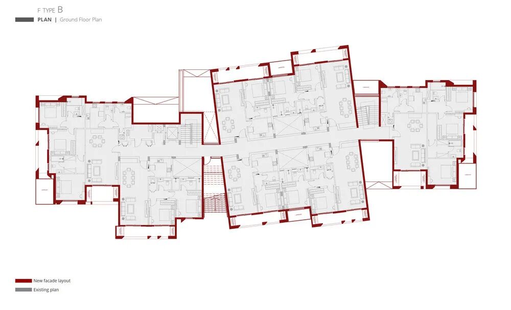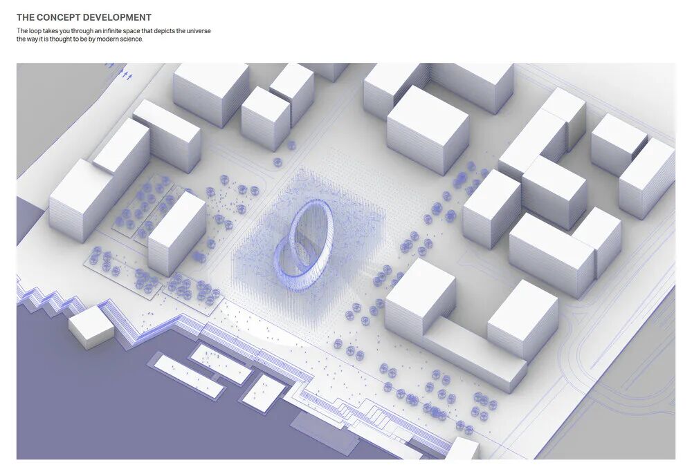 主体建筑的内部共有5个楼面,容纳办公空间、零售空间、文化区和住宅,所有这些都被排布在两个独立的环形部分。
