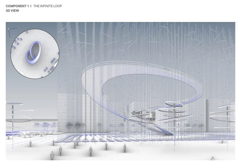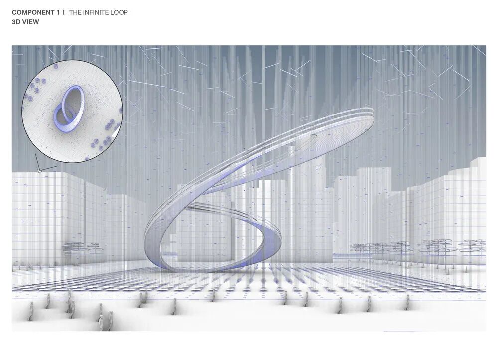 两个环之间将是一个空中公园,称为 Skypark,提供大面积多样的绿地,提供干净、新鲜的空气、充足的自然光线和城市全景。