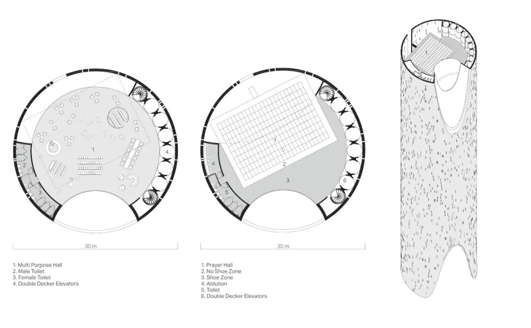 垂直清真寺更是打破了对传统伊斯兰教寺庙的认知,运用水晶、石材和混凝土,运用特殊的组合,打造一个星星点点的宗教地标。