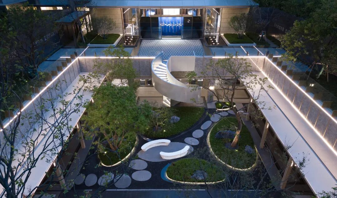 Sunken courtyard: The ground and underground double drop off lobby gives the residents an unexpected surprise. The style is simple and elegant, and there is no lack of elegance. The 5-meter high spiral staircase runs from the lobby to the ground of the courtyard. From the courtyard space where people find "unique holes" to the sunken space enclosed by buildings, the glass curtain wall makes the boundary between indoor and outdoor less obvious, creating more sense of light and natural touch. The Baogeli style afternoon tea is just downstairs, passing through the grid corridors made of Baogeli elements on both sides. Many times, we need to leave ourselves a quiet space to think and stop for afternoon tea. In fact, it is boundless in every inch. The infinity of life should never be trapped by space.