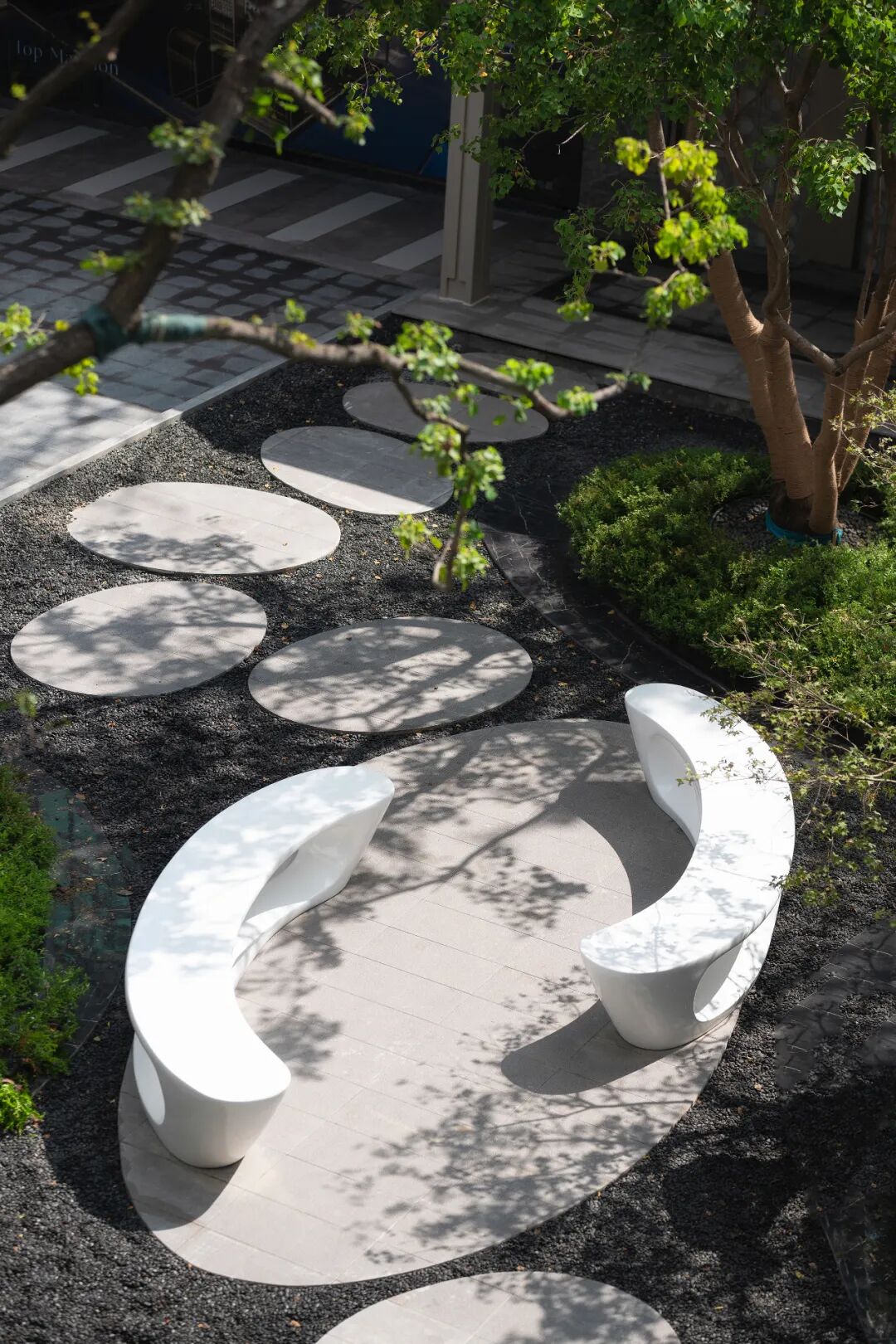 ▲开敞内庭:穿过辉煌的建筑,步入内庭,特色的植物如屏障般隔绝外界喧嚣,倒映在一汪水镜之上。
