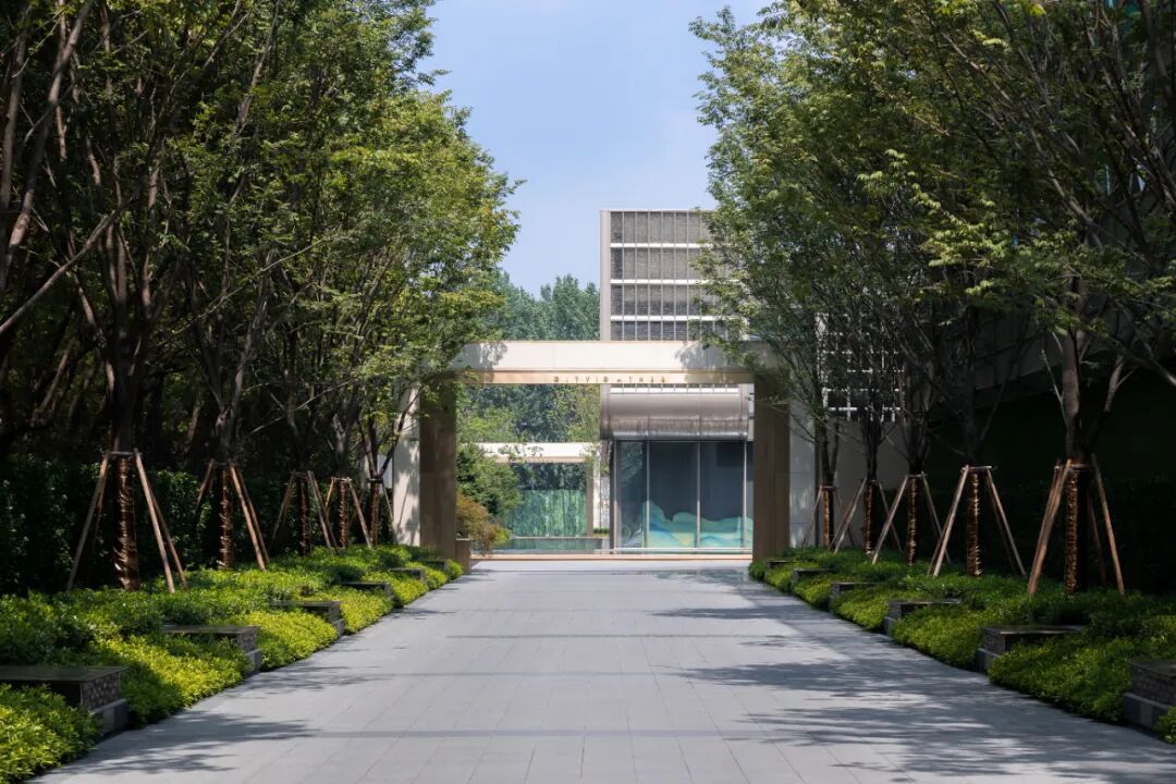 ▲豁然开朗:穿过静谧的绿荫榉树大道,进入豁然开朗的内庭院,通过一片景墙,以小见大,窥见大气辉煌的建筑。