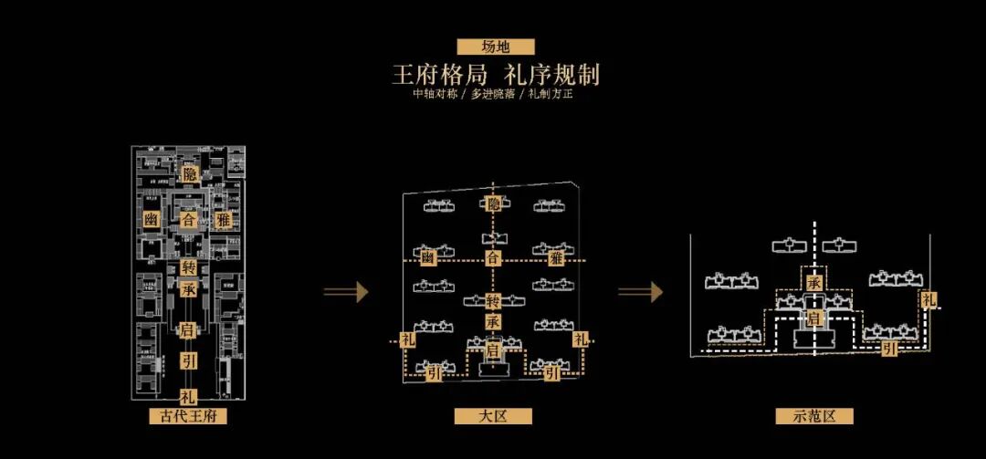 二进空间:将内庭院与都市喧嚣隔绝开来,琉璃与石材等天然肌理材质都渗透着王府的仪式感。