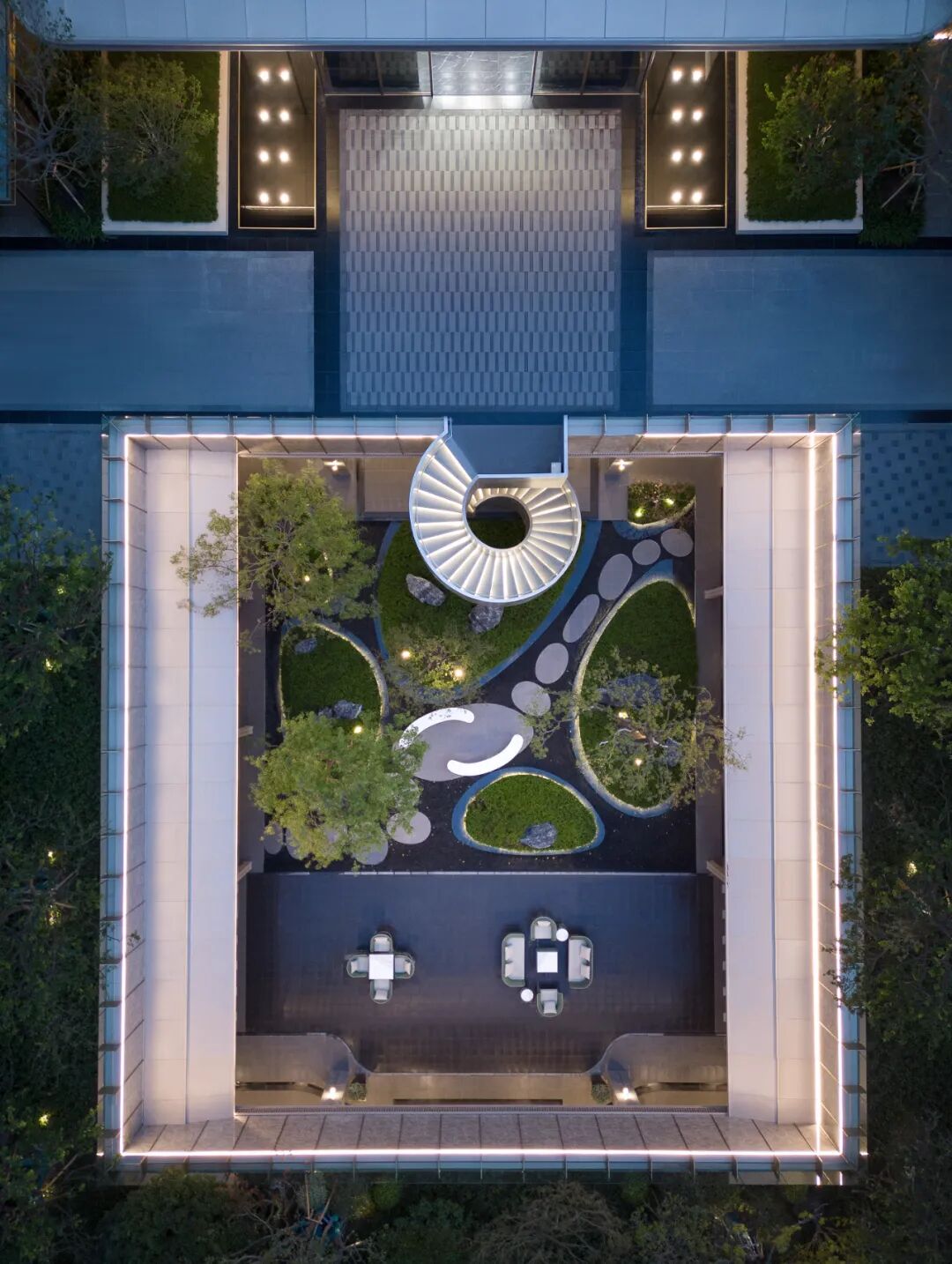 Two-entry space: The inner courtyard is isolated from the hustle and bustle of the city, and natural materials such as steel and stone permeate the ceremonial sense of the palace.