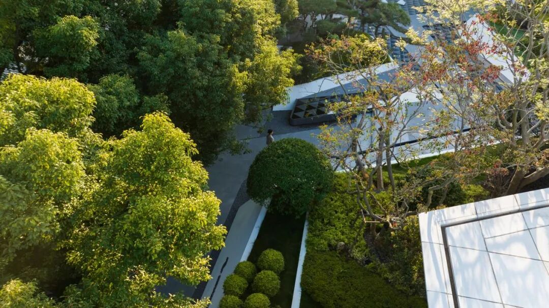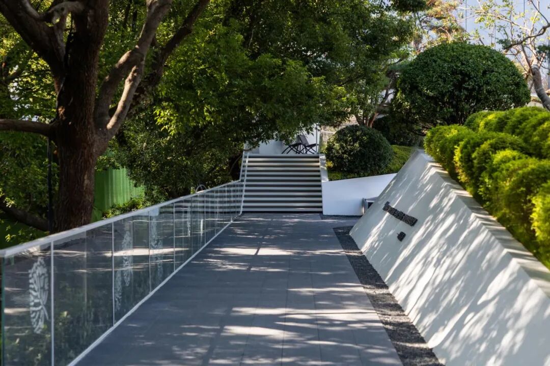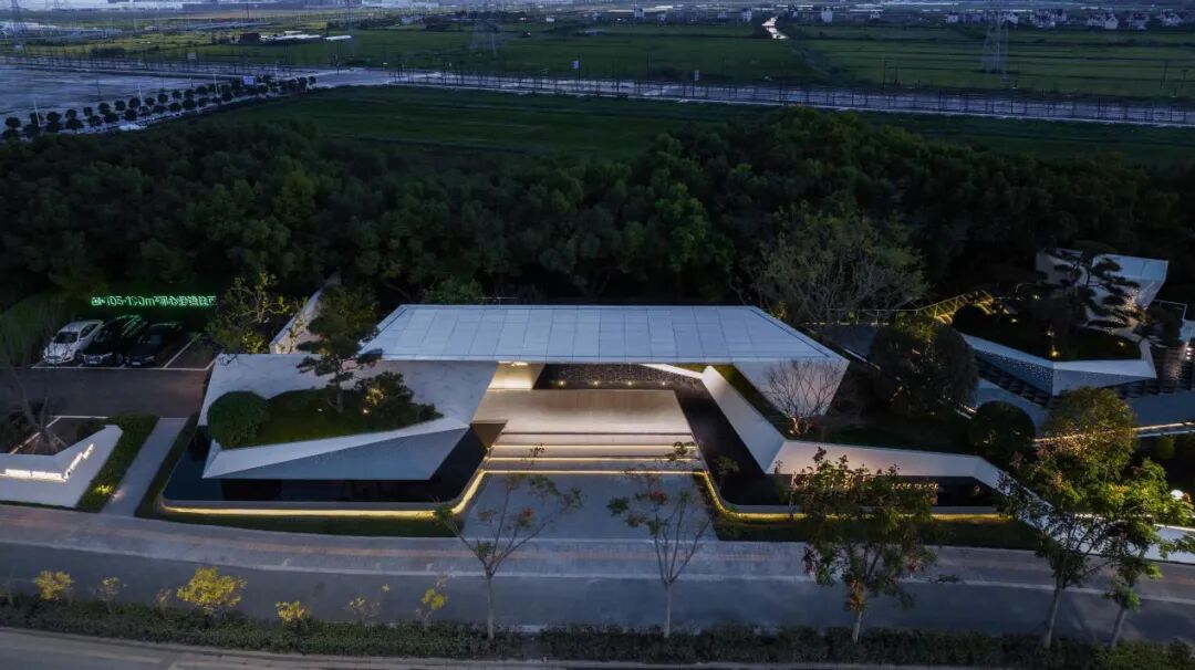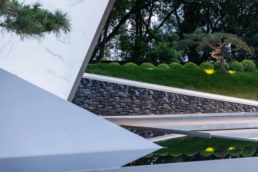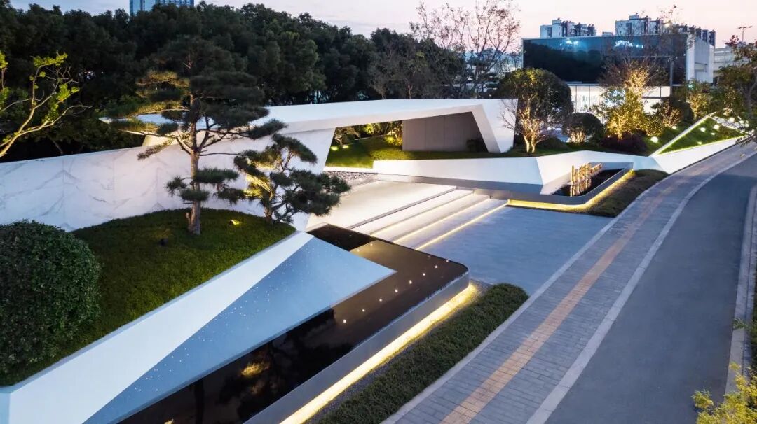It has a natural camphor forest background interface, giving full play to the natural tone. Through the pure white wall, water surface and lawn at the entrance, it forms a super display interface with a fresh and restrained entrance and natural art as the keynote.
